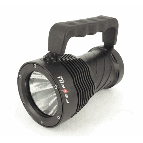 Фонарь из профессиональной серии для подводного плавания. Он светит холодным белым светом, яркость которого достигает значения в 10 тысяч люмен.