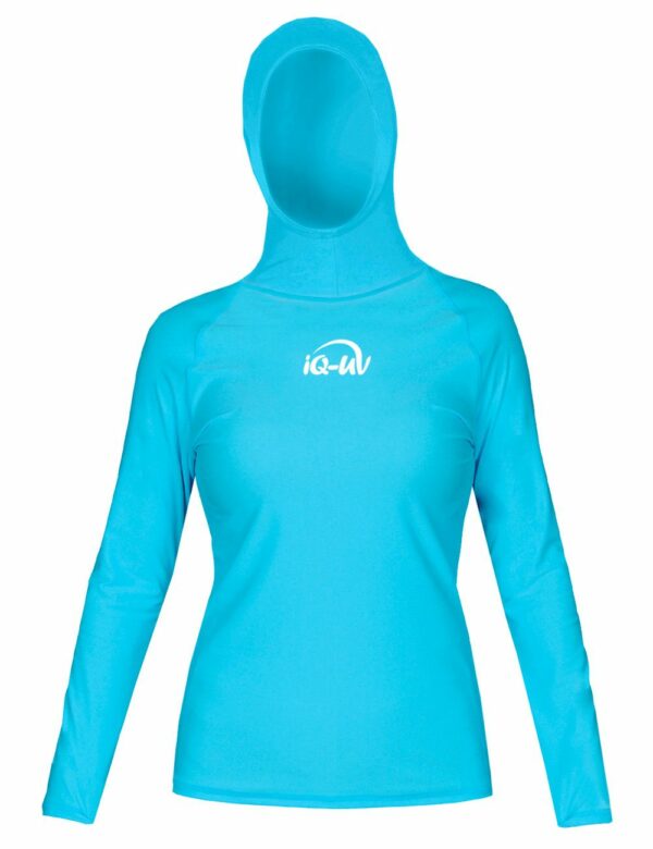 Футболка iQ UV 300+ капюшоном длинный рукав бирюзовый женская