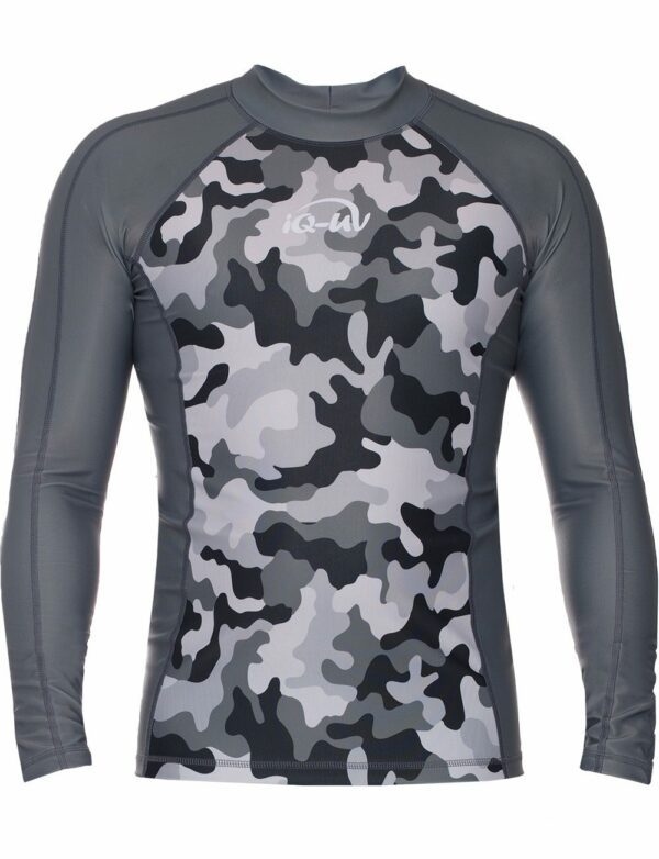 Футболка iQ лайкра UV 230 мужская камуфляж серый длинный рукав