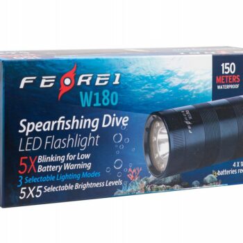 16 680 ₽Фонарь подводный FEREI W180CW, белый свет, со съемными АКБ – это модернизированный подводный фонарь с диодом желтого света, яркостью светодиода 4500 кельвин и мощностью светового потока 5636 люмен. FEREI W180CW специально разработан для любительского и профессионального дайвинга, подводной охоты. В фонаре W180CW установлены один CREE XHP-70 и восемь диодов CREE XP-G. Изготовлен из высокопрочного авиационного алюминия с анодированием III степени, с двойной защитой резьбовых соединений. Фонарь FEREI W180CW оснащен удобным магнитным переключателем света на торце и оснащен терморегулятором, защищающим прибор от перегрева. У фонаря FEREI W180CW используются сразу 9 диодов теплого белого света от американской компании CREE, центральный диод CREE XHP-70 и восемь диодов CREE XP-G, которые помещены в отдельные оптические системы – каждый диод с индивидуальной линзой и собственным отражателем – и генерируют более 5630 люмен яркости. Данное конструкторское решение помогает получить от подводного фонаря FEREI W180CW высококлассное освещение. FEREI W180CW предназначен для использования с четырьмя АКБ серии 18650 их можно заряжать в зарядном устройстве.