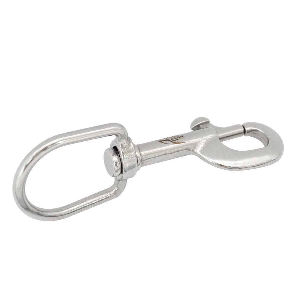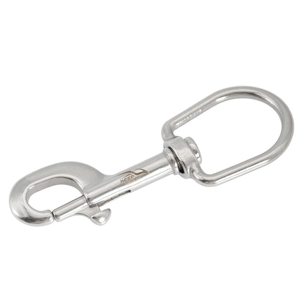 Двусторонний карабин с кольцом с одной стороны и с пружинной защелкой из нержавеющей стали А4 – это универсальный инструмент, применяемый в качестве соединительного элемента во многих бытовых сферах, включая туризм, спорт, строительство, рыбалку, охоту, выгул домашних животных и др. Размеры — 75, 90, 100, 120мм