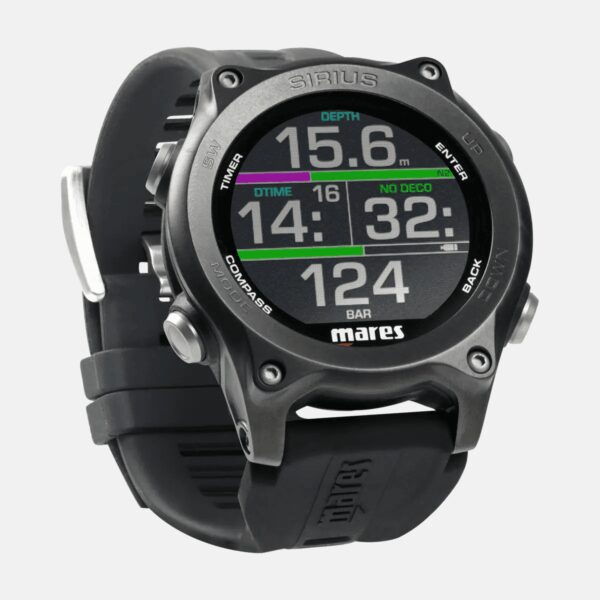 Sirius — это подводный компьютер в стиле часов, идеально сочетающий в себе технологии и элегантность. Этот подводный компьютер отличается передовыми технологиями, подходящими как для любителей, так и для дайверов с расширенным диапазоном погружений (Extended Range). Любители дайвинга могут просматривать данные о погружениях простым и интуитивно понятным способом, а также интегрировать данные из баллонов с помощью дополнительного модуля. Дайвер с расширенным диапазоном погружений может заправлять до пяти смесей найтрокс и тримикс. Благодаря сменному ремешку его можно использовать с гидрокостюмом любой толщины. Доступен в черном или черно-серебристом вариантах.