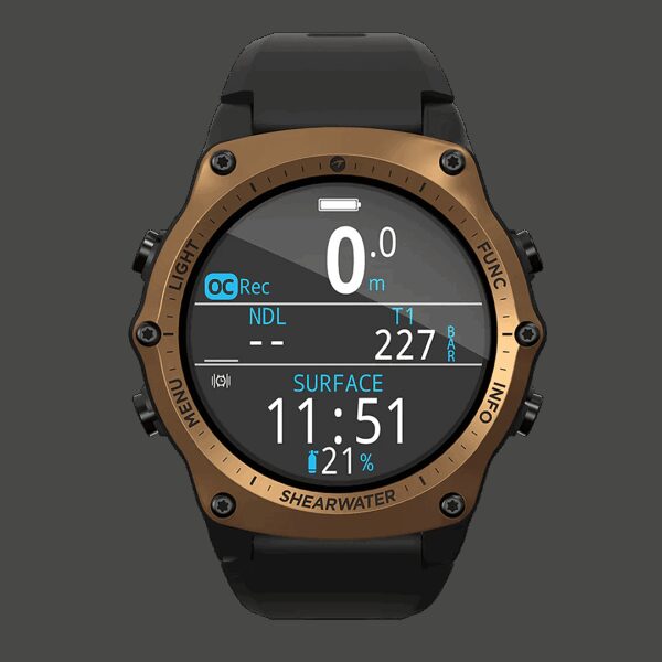 159800 ₽Подводный компьютер SHEARWATER TERIC bronze Первый SHEARWATER в формате часов! Полноценный технический компьютер в максимально компактном корпусе. Яркий цветной Led дисплей, беспроводная зарядка встроенного аккумулятора, поддержка до двух трансмиттеров, возможноcть обновления прошивки и передачи данных на смартфоны и планшеты через Bluetooth, встроенный цифровой компас и все это в стильном корпусе наручных часов.