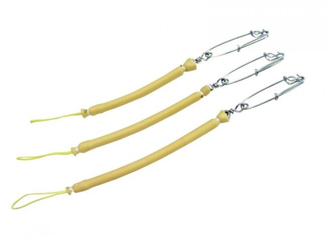 Амортизатор является очень полезным аксессуаром для ружья. Он необходим для правильной укладки линя на ружье без провисаний. Также амортизатор смягчает рывки подстреленной рыбы. Крупная рыба при первых рывках может порвать себя или линь и сойти. Амортизатор помогает погасить рывки, снижая, таким образом, вероятность потери добычи.Теперь эти латексные амортизаторы у нас бывают трёх различных длин и в 4 вариантах исполнения: Петля-резинка-Петля; Петля-резинка-Спиральный карабин; Петля-резинка-Булавка карабин; Петля-резинка-Специальный карабин; Петля-резинка-вертлюжок-Специальный карабин, то есть всего 15 вариантов. Теперь выбор за вами!Но какой бы из них вы не выбрали, неизменным останется хорошая Дайнема на петлях, эластичная, но прочная латексная резина, грамотные карабины и прочный линь внутри амортизатора, ограничивающий растяжение резины свыше 250% и принимающий на себя дальнейшую осевую нагрузку.