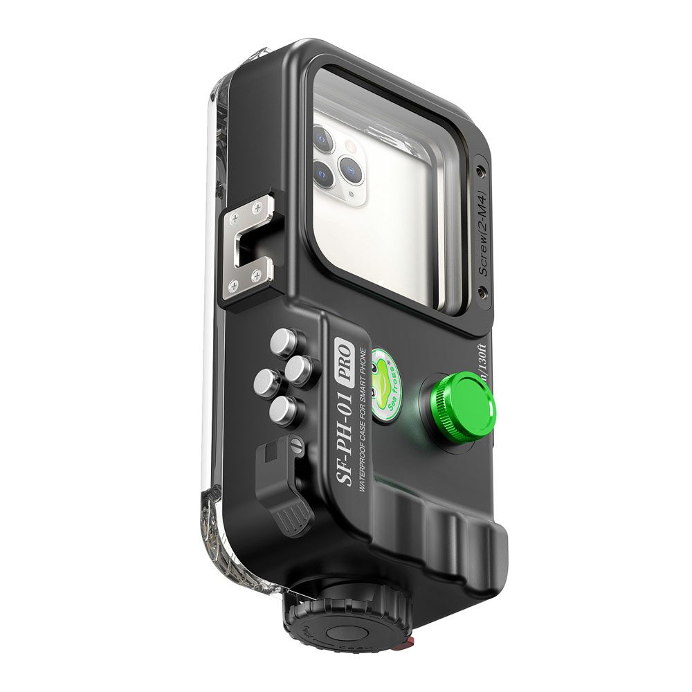Универсальный подводный бокс Seafrogs для смартфонов, подходит практически для всех смартфонов на iOS (iPhone) и Android Seafrogs SF-PH-01 PRO: Универсальный подводный бокс для смартфонов сделан из прочного поликарбоната, оптического стекла. Подходит для смартфонов размерами не более 175х85 мм. Большой иллюминатор из стекла позволяет использовать большинство смартфонов независимо от расположения объектива камеры. Глубина погружения 40 метров. Управление смартфоном в боксе через Bluetooth. Опционально возможно подсоединение к боксу широкоугольной насадки и красного фильтра. Новый прочный замок, поворотом которого открывается бокс. Вакуумный порт для проверки бокса на герметичность. Вакуумная помпа в комплекте. Компактный и удобный для любителей снорклинга и дайвинга. Три штативных гнезда снизу бокса, а также крепление типа «»холодный»» башмак, позволяет крепить рукоятки и армы для подводных фонарей. Также бокс может использоваться, как защитный чехол для вашего смартфона. Для работы не требуется приложение. Скачать инструкцию SeaFrogsSF-PH-01 в формате pdf