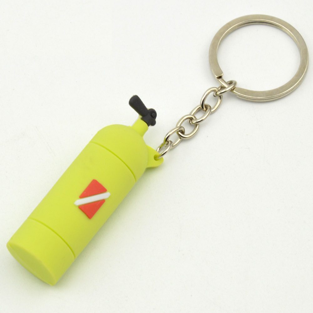 Брелок дайверский баллон — символ любителей дайвинга. Брелок для ключей, можно повесить на рюкзак или на молнию. Можно использовать для идентификации Вашего снаряжения.Материал — цинковый сплав + силиконРазмер — 6,5х2х1,8 см, длина цепочки 6,4 смВес — 20гЦвета — желтый, красный, белый, чёрный, синий