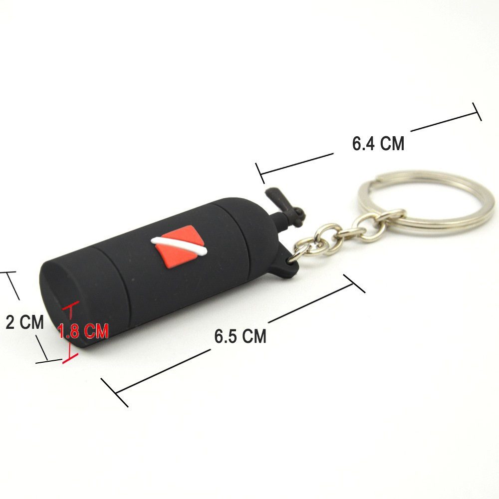 Брелок дайверский баллон — символ любителей дайвинга. Брелок для ключей, можно повесить на рюкзак или на молнию. Можно использовать для идентификации Вашего снаряжения. Материал — цинковый сплав + силикон Размер — 6,5х2х1,8 см, длина цепочки 6,4 см Вес — 20г Цвета — желтый, красный, белый, чёрный, синий