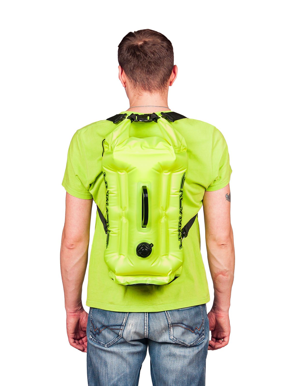 Буй-гермомешок-сумка-рюкзак. Все это в себе объединяет Буй-гермомешок salvimar SWIMMY SAFE Получается очень удобная, и очень многофункциональная вещь. Во первых это буй. Он оснащен специальным ремнем с застежкой «Fastex», с помощью которого вы прицепляете его как буй к Вам на пояс. Использование буя при плавании в открытой воде существенно повышает Вашу безопасность.