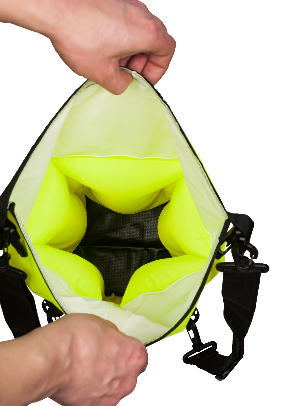 Буй-гермомешок-сумка-рюкзак. Все это в себе объединяет Буй-гермомешок salvimar SWIMMY SAFE Получается очень удобная, и очень многофункциональная вещь. Во первых это буй. Он оснащен специальным ремнем с застежкой «Fastex», с помощью которого вы прицепляете его как буй к Вам на пояс. Использование буя при плавании в открытой воде существенно повышает Вашу безопасность. Так как за счет яркого буя, Вас издалека, увидит любая лодка, и риск ее наезда на вас существенно сократится. Так же Вы можете отдохнуть на буе. Схватится за него, если у Вас вдруг сведет ногу. Ну и если вдруг Вас утащит течением, то явно лучше Вам быть с буем, чем без него. ))) Отдельного внимания заслуживает система надува. Больше ни каких «Сосков» которые нужно вытащить и надавить на них пальцами, чтобы воздух проходил внутрь буя. Буй оснащен клапаном со съемной резьбовой крышкой. Надувать и сдувать его теперь намного проще. Такой Буй-гермомешок отлично подходит для триатлона. Во вторых это гермомешок-рюкзак. В него можно положить ценные вещи, телефон, деньги, документы, ключи и т.п. И взять это все с собой на воду. Ну часто же бывает, что не хочется на пляже оставлять ценные вещи без присмотра. С Буем-гермомешком salvimar SWIMMY SAFE – это вообще больше не проблема – просто берете с собой Ваши ценные вещи. В третьих это гермомешок-рюкзак. В комплекте идут две удобные лямки,Ю которые можно пристегнуть к гермомешку и он превратится в Рюкзак. Объем 20 литров – это вполне достаточно, чтобы взять все нужные вещи на пляж и удобно донести их до этого самого пляжа. И в четвертых – в надутом состоянии, если положить внутрь нашего гермомешка, к примеру, охлажденные напитки, то они будут нагреваться гораздо медленнее, чем просто в обычной сумке. В общем действительно такая простая и при этом супер-функциональная вещь. Прямо Эврика. Для любителей плавать и загорать на пляже – просто не заменимая штука.