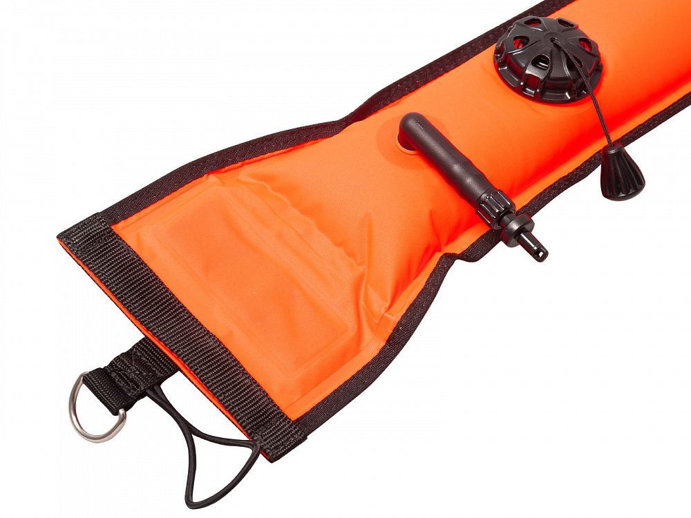 Надувной маркерный буй замкнутого цикла с клапанами, предназначен для обозначения места-нахождения дайвера при прохождении декомпрессионных процедур, остановок безопасности, а так же для дайвинга в условиях сильного течения и плотного трафика судоходства.