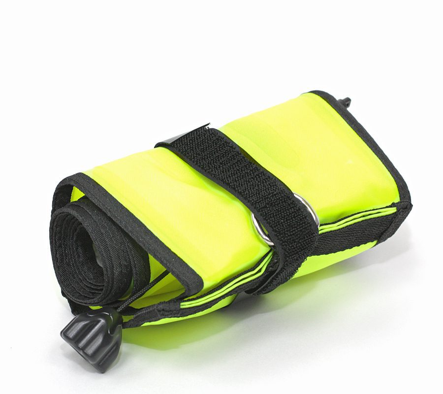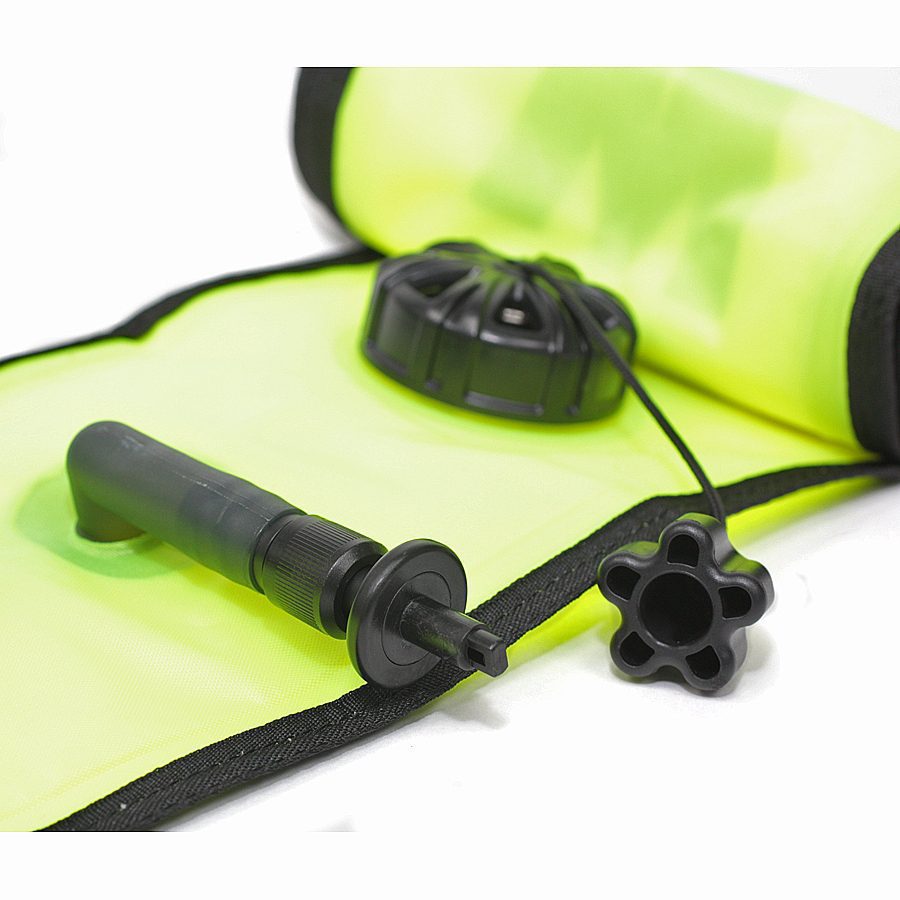 Декомпрессионный/маркерный буй желтого цвета. Длина 150 см, диаметр 15 см. — Стравливающий клапан — Система орального поддува — Светоотражающая вставка