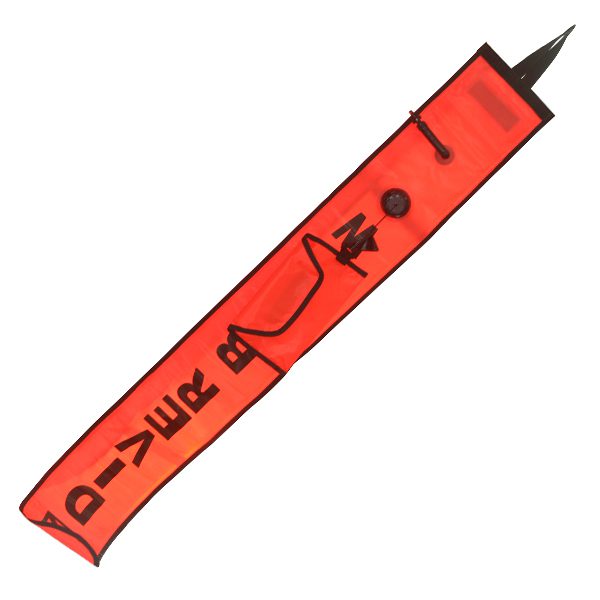 Маркерный буй Diver Alert изготовлен из хорошо заметного оранжевого ПВХ со светоотражающей полосой.
