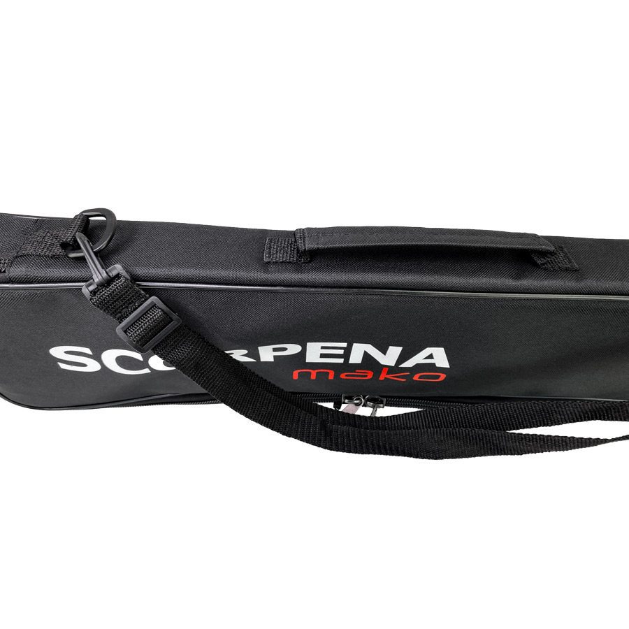 Сумка-чехол для пневматического ружья SCORPENA MAKO предназначается для переноски и хранения подводного пневматического ружья. Чехол защитит ваше оружие от песка, пыли и механических повреждений.Сумка-чехол Mako имеет увеличенную глубину основного отделения, поэтому туда легко помещается полностью снаряженное ружье, с катушкой, компенсатором плавучести, гарпунами, наконечниками, линем, насосом и подствольным фонарем, а также паспорт на ружье ну и конечно запасные части и другие мелочи.Причём катушка туда помещается как отдельно, так и пристёгнутая к ружью. То есть при использовании нашего чехла нет необходимости разбирать ружьё каждый раз для транспортировки и хранения.Сумка выполнена из прочного материала черного цвета, имеет толстые мягкие стенки. Для защиты при падении и для придания формы между внутренним и внешним слоями проложен изолирующий слой. По всему периметру чехла расположена молния, а для удобства переноски предусмотрена мягкая ручка. Сумка имеет съёмный регулируемый плечевой ремень, который обеспечит комфортную переноску снаряжённого ружья со всеми аксессуарами не занимая рук.Длинная молния с двумя бегунками, позволяет полностью открыть верхнюю часть чехла и получить максимально удобный доступ к его содержимому.Внутри чехла имеются специальные места для удобного размещения всего сопутствующего оборудования для ружья.На верхнем отделении сумки расположены 2 длинных кармана, закрывающиеся на молнию. В них отлично размещаются запасные наконечники, амортизаторы, линь, заряжалки и прочие мелкие аксессуары.В основном отделении отлично располагается ружьё, оно фиксируется при помощи липучки. Длина фиксирующей липучки позволяет закрепить внутри ружьё с надетым компенсатором плавучести. Здесь же есть специальные держатели для запасных гарпунов и насоса.Чехлы выпускаются для 4 длин ружья Scorpena Mako.