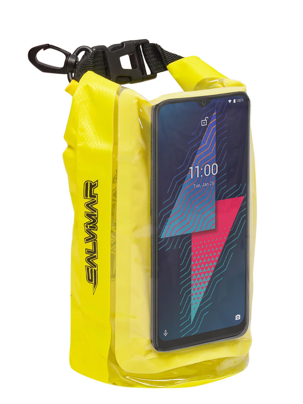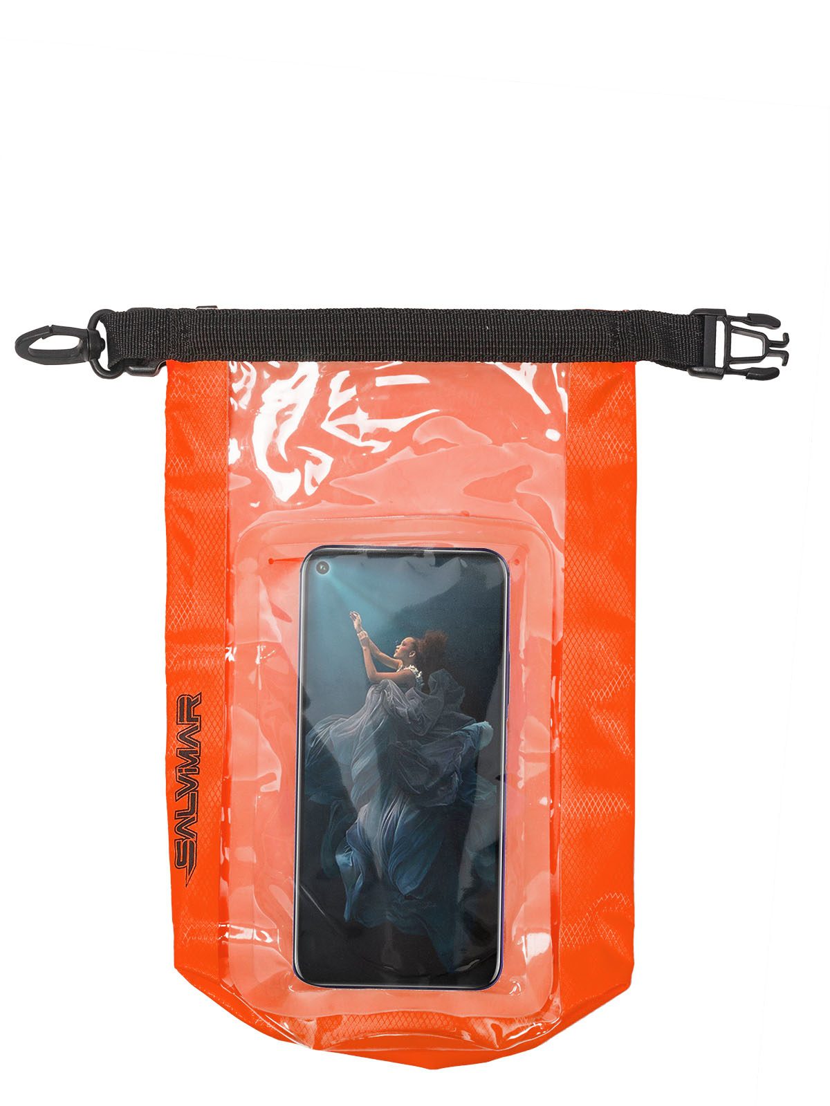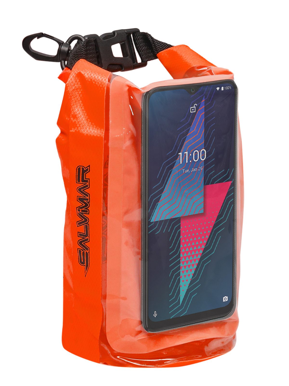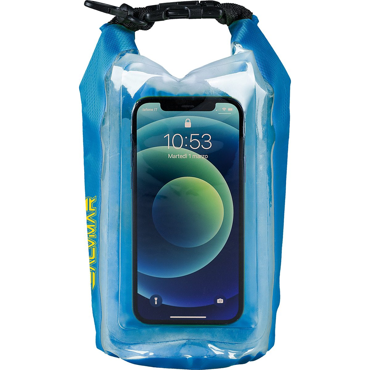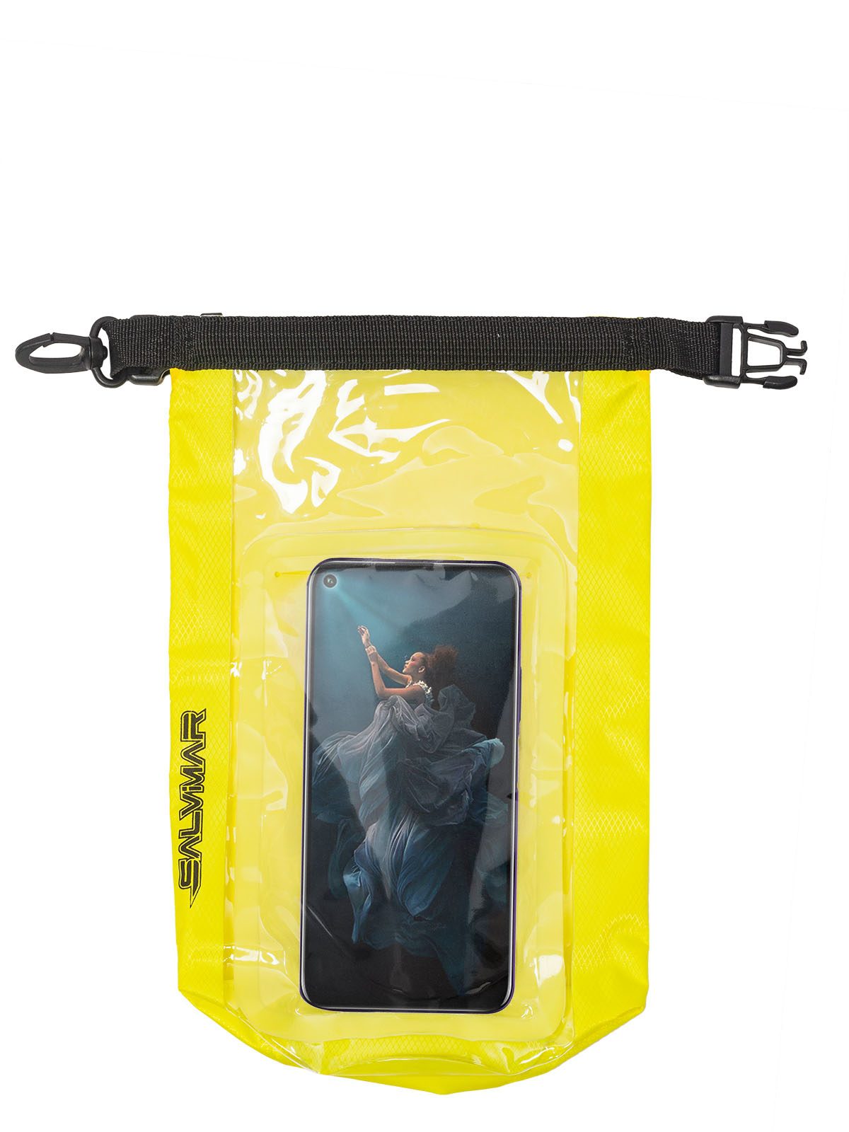 Водонепроницаемый чехол-гермомешок для смартфона от Salvimar очень удобная вещь, для того чтобы взять свой смартфон с собой при занятии каким либо водным видом спорта и не переживать, что телефон намокнет и сломается. А помимо смартфона в него поместятся еще ключи и документы. При этом Ваш смартфон сохранит функциональность — Вы можете пользоваться им не доставая его из гермомешка, за счет специальной тактильной пленки из которой сделана стенка чехла-гермомешка. Смартфон укладывается в специальный кармашек внутри гермомешка, что позволяет отгородить его от других вещей в гермомешке и он не поцарапается, например, ключами, которые Вы положили в мешок.