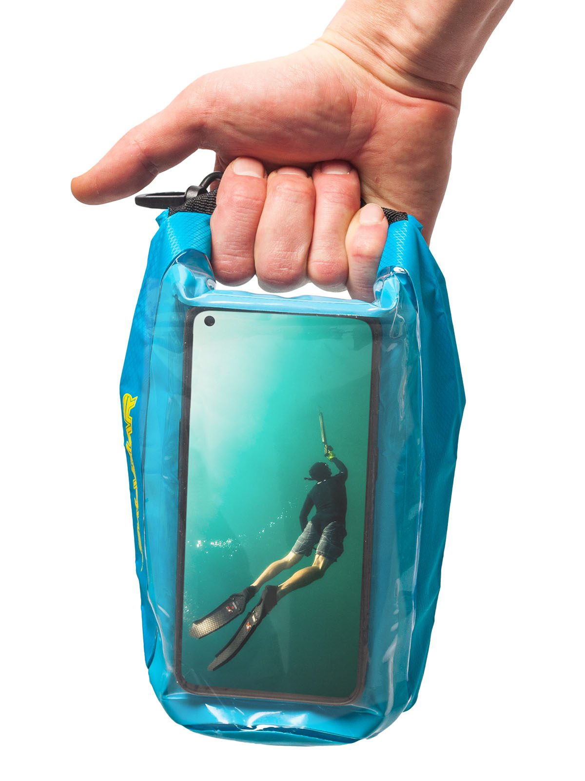 Водонепроницаемый чехол-гермомешок для смартфона от Salvimar очень удобная вещь, для того чтобы взять свой смартфон с собой при занятии каким либо водным видом спорта и не переживать, что телефон намокнет и сломается. А помимо смартфона в него поместятся еще ключи и документы. При этом Ваш смартфон сохранит функциональность — Вы можете пользоваться им не доставая его из гермомешка, за счет специальной тактильной пленки из которой сделана стенка чехла-гермомешка. Смартфон укладывается в специальный кармашек внутри гермомешка, что позволяет отгородить его от других вещей в гермомешке и он не поцарапается, например, ключами, которые Вы положили в мешок. В общем все самые ценные вещи Вы теперь можете брать с собой на воду и не переживать, что они намокнут. Максимальный размер смартфона, который помещается в чехол: 160 мм. х 100 мм. х 15 мм.