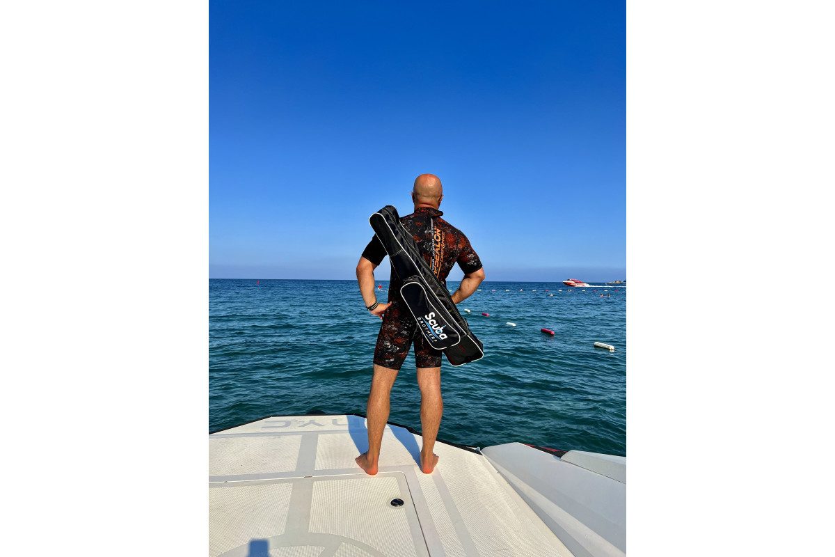 Сумка-чехол для ласт SCUBA BROTHERS MEDUZA, с карманом предназначена для транспортировки длинных охотничьих и фридайверских ласт. На чехле имеется большой вместительный карман для снаряжения, в него спокойно помещается маска, трубка, носки, перчатки. В отсек для ласт можно поместить тонкий или короткий гидрокостюм.Чехол выполнен из поликордуры Oxford 1680D, это толстая нейлоновая ткань с особой структурой нити, с водоотталкивающей пропиткой и с полиуретановым покрытием. Кордура изначально предназначалась для армии. Ткань обрабатывается в несколько приёмов и покрытие получается очень качественным и держится достаточно долго. Кроме того, в нить добавляется до 10% хлопка, в результате поверхность оказывается как бы мохнатой, с ворсом, что позволяет увеличить стойкость ткани к истиранию. Этот материал отличается исключительной надежностью и долговечностью. Материал водоотталкивающий и легко моется.Регулируемый наплечный ремень для комфортного переноса чехла на плече. На дне чехла имеется люверс из нержавеющей стали для слива воды. Сумка-чехол оснащена мощной и надежной молнией с удобными пуллерами.Характеристики:- рекомендации по применению: фридайвинг, подводная охота, дайвинг, снорклинг;- назначение: транспортировка ласт и снаряжения;- материал: поликордура Oxford 1680D;- плотность материала, DEN: 1680;- объём, л: 15;- габариты чехла Д*Ш*В, см: 105*22*20;- габариты кармана Д*Ш*В, см: 46*18*7;- max нагрузка, кг: 10;- дополнительный наружный карман: да;- плечевой ремень: да, регулируемый по длине;- люверс: да;- цвет: черный;- бренд: SCUBA BROTHERS;- страна бренда: Россия;- страна производства: Россия.