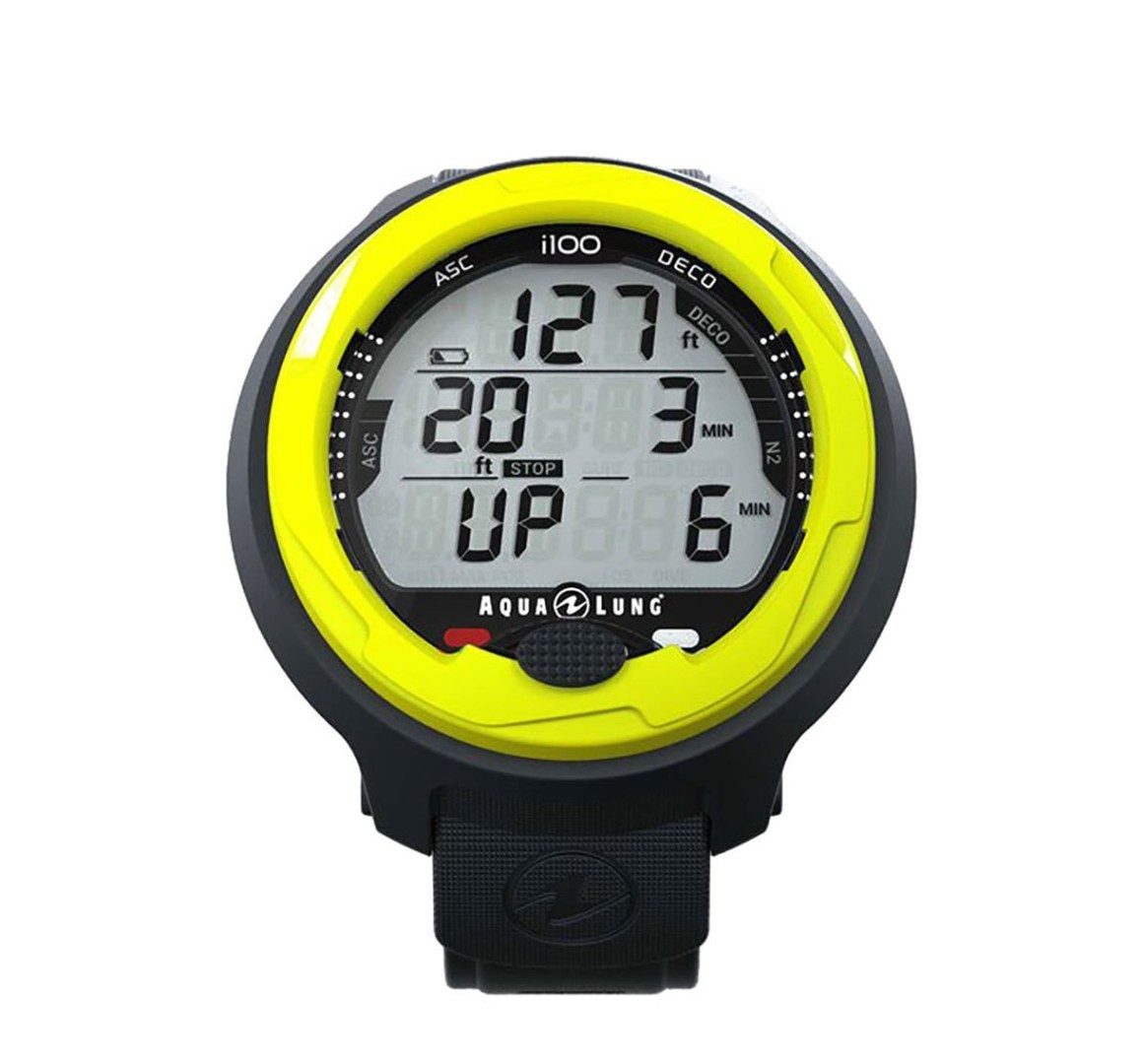 AquaLung i100 – превосходный выбор для начинающего дайвера. Компьютер для дайвинга Aqua Lung i100. Помимо всех необходимых для комфортного дайвинга функций обладает большим экраном с хорошо читаемыми крупными символами. Крупный циферблат D5.5см и достаточное количество режимов делают этот декомпрессиметр уникальным на рынке по соотношению цена-качество и отличным выбором для начинающих дайверов. При помощи всего одной кнопки вы можете управлять четырьмя рабочими режимами и двумя газовыми смесями. Подводный компьютер сохраняет все настройки и расчеты во время замены батарейки (которая может быть осуществлена пользователем). Для вашей безопасности компьютер оснащен звуковыми сигналами и хорошо видимым светодиодом. Aqua Lung i100 сочетает в себе все необходимые функции подводного компьютера.