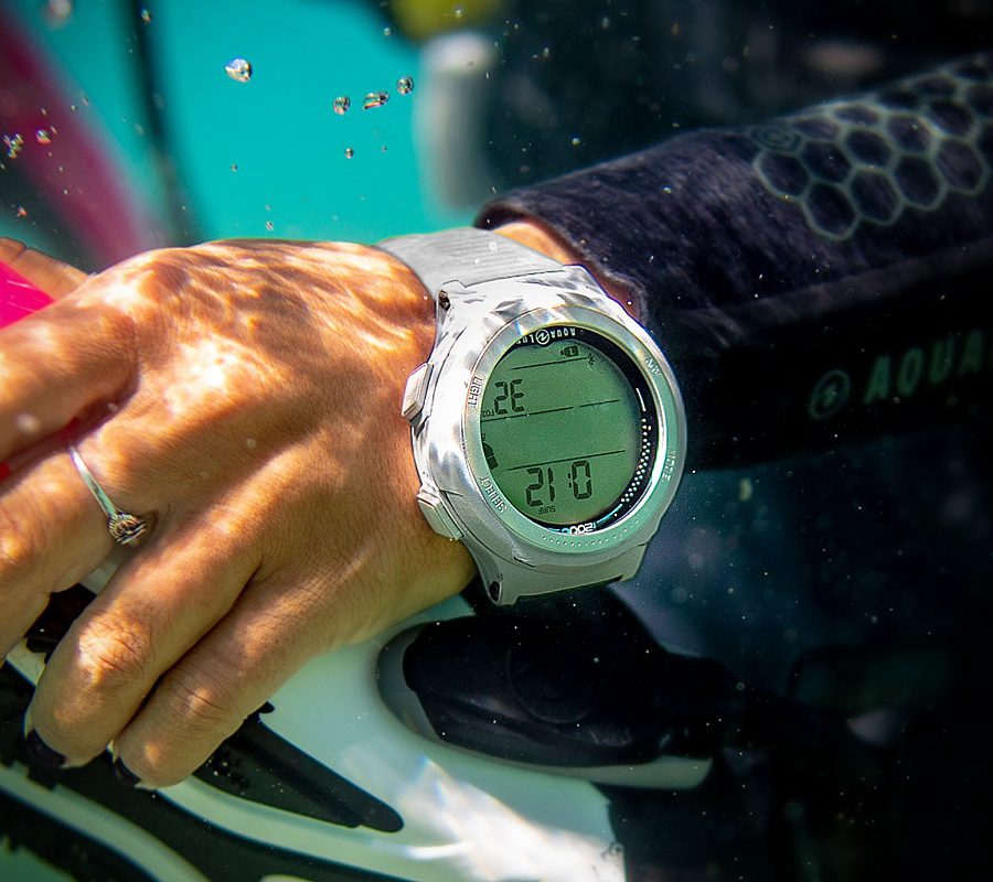 Декомпрессиметр наручный i200C AquaLung i200С – обновленная и улучшенная версия популярного декомпрессиметра i200. Простой в использовании, интуитивно понятный компьютер в форме наручных часов. Компактный размер, стильный дизайн – все это делает его прекрасным компьютером не только для новичков, но и для более искушенных дайверов. Функция Bluetooth позволяет осуществлять интерактивное взаимодействие i200С с планшетом или смартфоном для просмотра логов, профиля и локации. Для этого вам понадобится программа или приложение DiverLog+, установленное на планшет, смартфон или ПК. Программа и приложение, помимо работы с данными декомпрессиметра, дают возможность хранить и делиться фотографиями и видео. Базовая версия устанавливается бесплатно. Основные особенности 4 режима [Air, Nitrox, Gauge и Free dive], переключение между режимами Dive и Fee dive без ограничений. Функция Bluetooth. Используя ваш планшет или смартфон и приложение DiverLog+ (доступное для платформ Android и iOS), вы можете управлять настройками вашего компьютера с помощью технологии Bluetooth Smart 4.0, а также переносить все данные вашего погружения в электронный лог-бук. Заменяемая пользователем батарея (сохраняются все данные). Хорошо различимый красный световой индикатор для дополнительной безопасности. Переключение между 3 смесями Nitrox до 100% O2 без ограничений. Простой доступ нажатием одной кнопки к данным о последнем погружении (макс. глубина и донное время). Таймер остановки безопасности. Таймер глубоких остановок. Простой доступ нажатием одной кнопки к данным о последнем погружении (макс. глубина и донное время). Сохраняет все настройки в памяти во время замены батарейки. Звуковой и световой сигналы. Логбук на 24 погружения. Режим истории погружений включает в себя общее количество погружений, максимальную глубину, общее количество часов под водой и минимальную температуру. Возможность загрузить и установить последнюю версию прошивки – с обновлениями и, возможно, новыми функциями. Выпускается в 6 цветах.   Комплектация Инструкция по эксплуатации Памятка безопасности Брошюра DiverLog Карточка «Быстрый старт» Защитный экран Ключ для крышки батарейного отсека Цвет: синий, бирюзовый, лимонный, розовый, серый, темно-серый Отличия от i200: Три смеси вместо двух. Функция Bluetooth. Стильный дизайн с металлическим ободком.