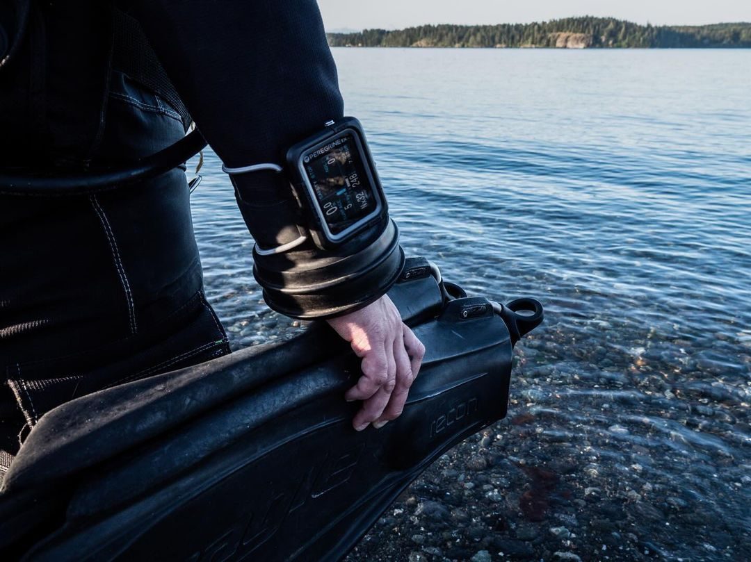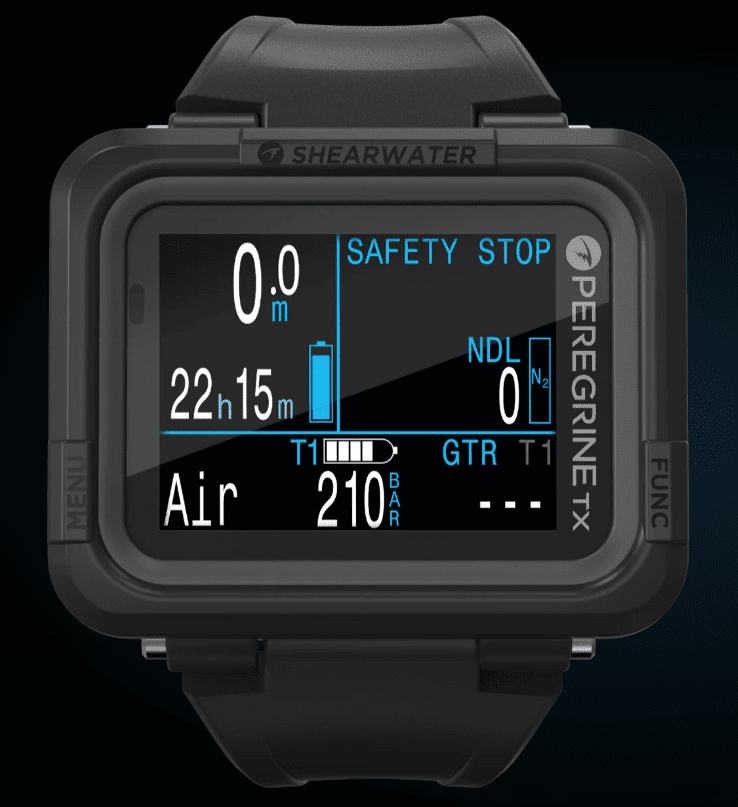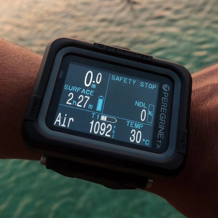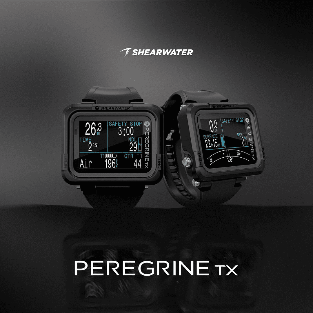 Компьютер для дайвинга Shearwater PEREGRINE TX — это сочетание большого и удобного интерфейса всеми любимого PEREGRINE, а также основных функций флагманской модели PERDIX 2 — интеграции воздушной системы и цифрового компаса. Спроектировано и построено в Канаде, рассчитано на глубину до 120 метров. Основные особенности: Полноцветный, большой, легко читаемый экран Возможность интеграции с трансмиттером Swift Цифровой компас с компенсацией наклона Беспроводная аккумуляторная батарея Режимы: Воздух Найтрокс 3 газа Найтрокс Gauge. Боттомтаймер Функции: Декомпрессионный компьютер Воздушный интегрированный Подключает до 4 передатчиков (опционально) 3-осевой цифровой компас с компенсацией наклона Беспроводная технология Bluetooth Вибрационные оповещения Обновляемая прошивка Силиконовый ремешок диаметром 26 мм с застежкой из нержавеющей стали Чехол из баллистического нейлонового полимера Полная поддержка сайдмаунта Технические характеристики: Разрешение экрана: 320 x 240 QVGA Тип дисплея: полноцветный ЖК-дисплей Размер дисплея: 5,59 см/2,2 дюйма Тип батареи: литий-ионная аккумуляторная батарея Срок службы батареи: до 30 часов (средняя яркость) Беспроводная зарядная станция Количество газов: 3 (1–100 % O2) Глубина: 120 м / 394 фута Емкость журнала погружений (10 секунд): 400 часов или 750 записей о погружениях Размер (подводный компьютер): 77 x 68 x 25 мм Вес (подводный компьютер): 125 г Черный ремешок: в комплекте Беспроводная зарядка Время автономной работы от одной зарядки составляет около 30 часов при среднем уровне яркости. В комплект поставки входит беспроводная зарядная станция USB-C. Несколько языков Языки включают: английский, французский, упрощенный китайский, традиционный китайский, немецкий, португальский, корейский, японский, итальянский и испанский. Комплектация: Компьютер для дайвинга PEGRINE TX Беспроводная зарядная станция с кабелем USB-C Карточка контрольного списка проверок Информационное руководство по продукту Защита экрана Черный ремешок стандартной длины и серый шнур