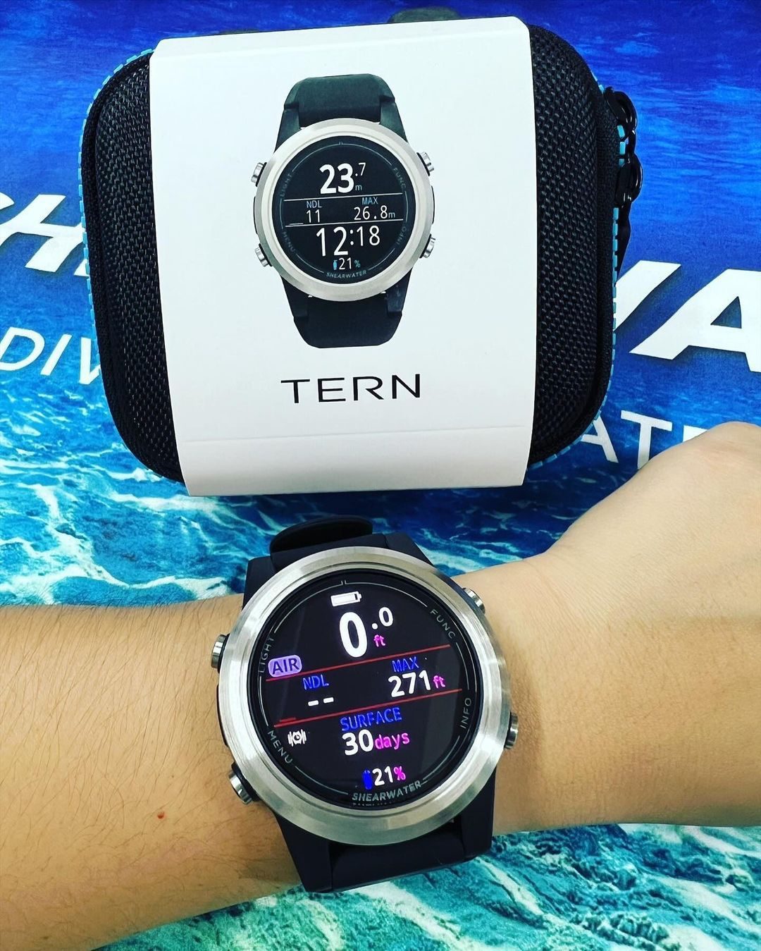 Подводный компьютер SHEARWATER TERN — предназначен для спортивного и легкого технического дайвинга. Разработано и построено в Канаде, рассчитано на глубину до 120 метров. Полноцветный, яркий, высококонтрастный AMOLED-дисплей Интуитивно понятный 4-кнопочный интерфейс Беспроводная перезаряжаемая батарея AMOLED-дисплей высокого разрешения — 1,3-дюймовый дисплей с глубоким черным цветом и яркими цветами Современный, элегантный дизайн — прочная конструкция с закаленным стеклом, современным безелеи и беспроводной зарядкой USB-C Несколько режимов погружений — : Air, Nitrox до 40% кислорода, 3Gas Nitrox, Измерения, Фридайвинг Оснащен мощной настраиваемой системой вибрационного оповещения.