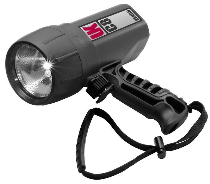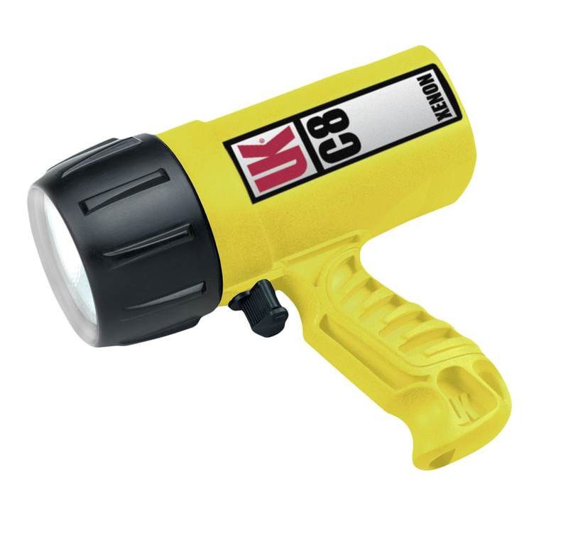 Подводный фонарь С8 Xenon на 8 алкалиновых или 8 аккумуляторных батареях типа С. Фонарь имеет только пистолетную рукоятку с прикреплённой к ней нейлоновой петлёй. Технические характеристики: Мощность: 2×13.2 Вт Лампа: ксеноновая, большой яркости Световой поток: 245 Lm Время работы: 3,5-4.5 часа Батареи: 8 батарей типа C.