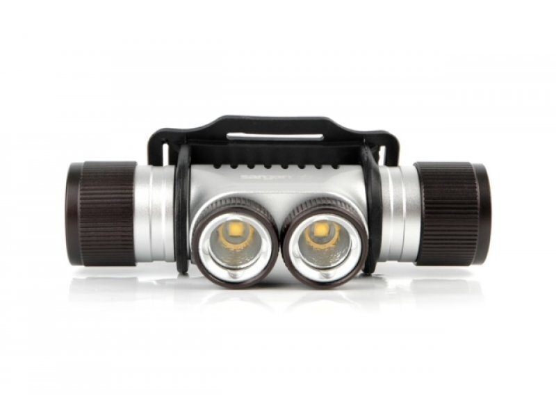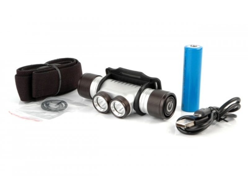 Фронтальные линзы – 2 штуки Размер — 100мм * 40мм Максимальный световой поток – 900 люмен Время работы в режиме: — 100% мощности/50% мощности — 120/200 минут * 2 диода, CREE XM-L U2 Аккумуляторы – 1шт. литий-ионный, тип 18650, 3.7 вольт, емкость – 2400 миллиампер в час.