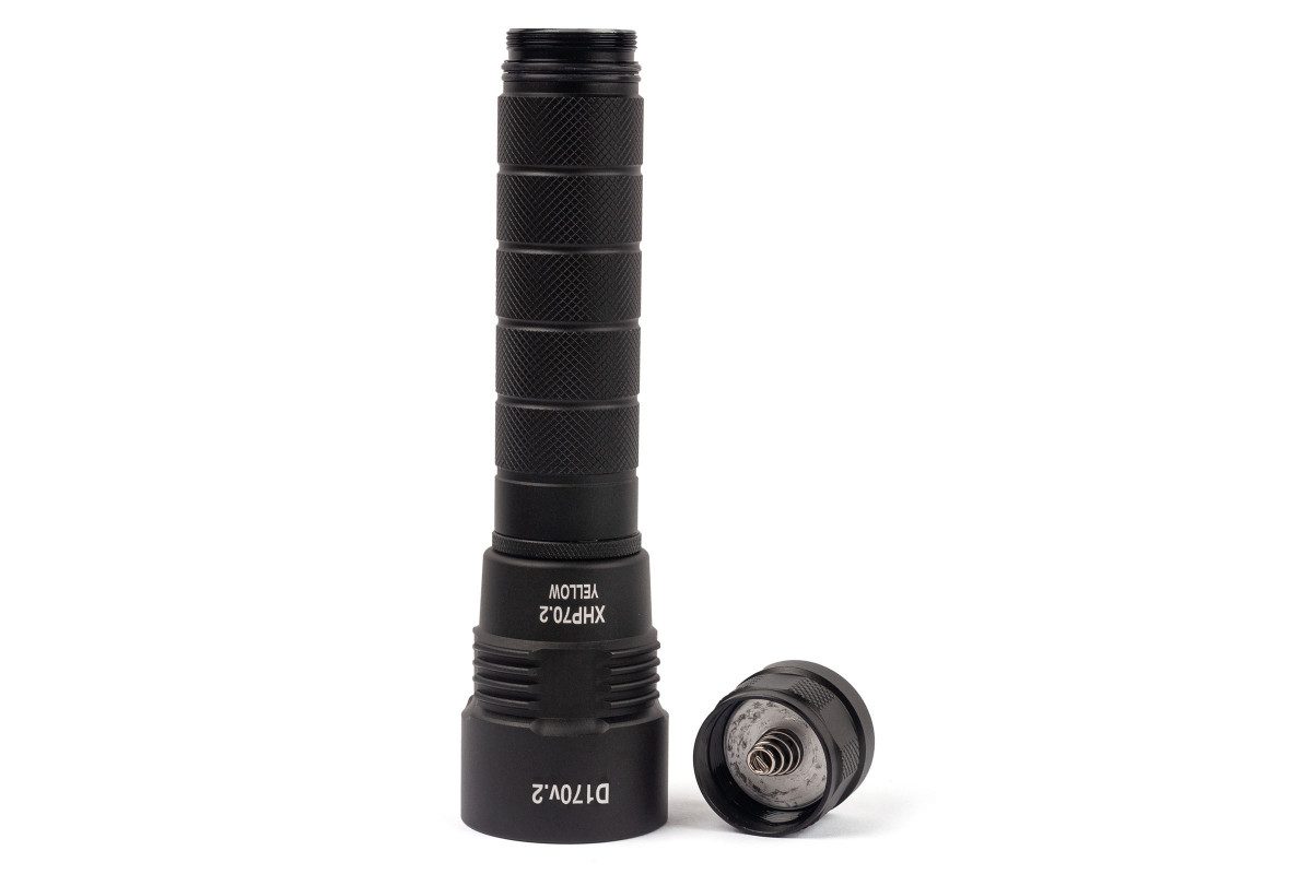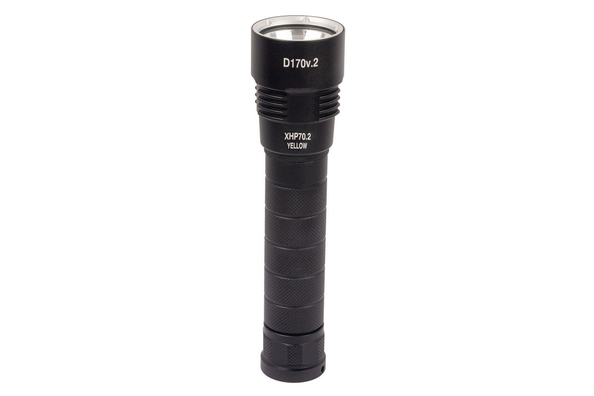 Фонарь подводный SCUBA BROTHERS D170 V.2, 4290 lm, белый свет, это подводный фонарь для охоты и дайвинга, который изготовлен из высокопрочного авиационного алюминия с анодированием. Фонарь оборудован новым и надежным диодом XHP70.2 и магнитным переключателем (ползунком). Фонарь SCUBA BROTHERS D170 V.2 очень яркий, более лёгкий и компактный, чем фонарь серии D170. Фонарь с белым светом имеет основное поле засветки и пробивной центральный луч, идеален для погружения в прозрачной воде.Предупреждение: фонарь предназначен для использования только в воде. При использовании на суше диод фонаря сгорит. Эта поломка не попадает под гарантийный случай.Комплектация: фонарь (без аккумуляторов, без зарядного устройства), ремешок на запястье, запасные О-ринги, вставка гильза 2 шт.Гарантия: гарантийный срок 90 дней с момента приобретения.Советы использованию, обслуживанию и хранению:1. Не направляйте луч фонаря прямо в глаза.2. Фонарь можно использовать только в воде, на суше диод фонаря перегорит из-за перегрева.2. Не устанавливайте аккумуляторы с обратной полярностью.3. Храните фонарик без батареек, чтобы предотвратить возможную коррозию из-за утечки аккумулятора.4. Всегда заряжайте аккумулятор при тусклом свете, это позволит избежать перезарядки батарей и продлить срок службы.5. После использования в соленой воде необходимо тщательно промыть фонарь в пресной воде.6. Очистите, смажьте О-ринги, что лучше для длительного использования фонарика.7. Очистите аккумулятор и электрические контакты.8. Храните фонарь в сухом прохладном месте вдали от прямых солнечных лучей.Характеристики:- рекомендации по применению: подводная охота, дайвинг, туризм;- модель: D170 V.2 белый свет;- артикул: D170V2white;- свет: холодный белый;- яркость светодиода, кельвин: 6000 (белый), 3200 (желтый);- срок работы светодиода: до 10000 часов;- диод: XHP70.2 (второе поколение);- мощность светового потока, lm: 4290;- рукоятка: противоскользящий материал;- материал корпуса: авиационный алюминий;- линза: закаленное стекло;- материал отражателя: отражающая поверхность с текстурированной поверхностью из алюминиевого сплава;- переключатель: магнитный выключатель (плавное затемнение);- max глубина использования, м: 100;- водонепроницаемость: IPX8;- питание: используются 2 батареи серии 26650 или 2 батареи серии 18650 (при использовании гильз);- длина фонаря, мм: 199;- диаметр рукоятки, мм: 35;- диаметр рассеивателя, мм: 49;- вес фонаря, грамм: 300;- вес комплекта, грамм: 395;- габариты упаковки, Д*Ш*В, мм: 250*73*67;- ремешок на запястье: да;- цвет корпуса: черный;- гарантийный срок с момента покупку, дней: 90;- бренд: SCUBA BROTHERS;- страна бренда: Россия;- страна производства: Китай.