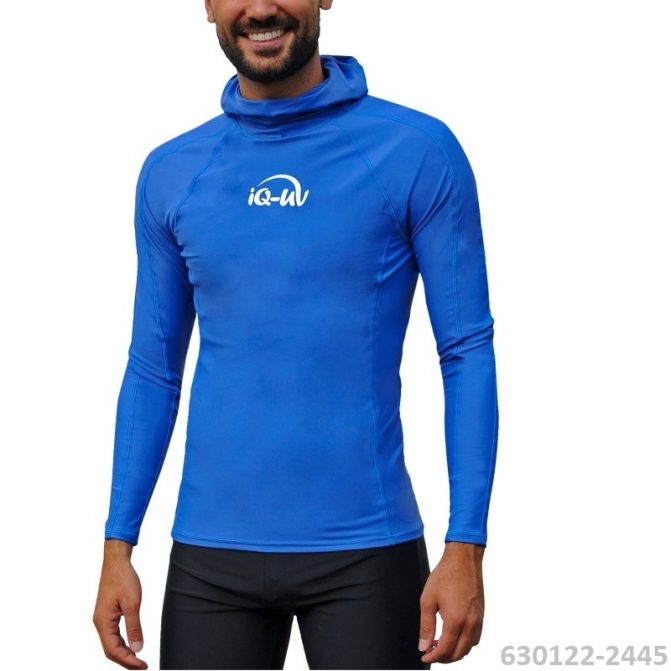 Футболка iQ UV 300 лайкра мужская длинный рукав с капюшоном синий
