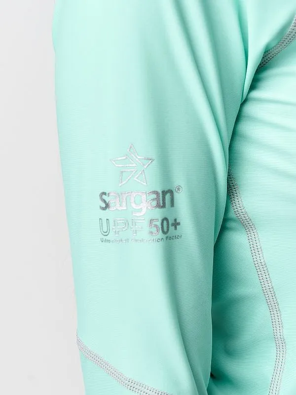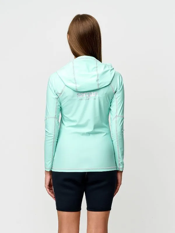 Рашгард Сарган «»АГИДЕЛЬ ХУДИ»», длинный рукав — защитная футболка с длинными рукавами капюшоном изготовлена из специального ультралегкого, эластичного, дышащего и быстросохнущего материала. Рашгард предназначен для пляжного отдыха, плавания и снорклинга в открытой воде, а также для каякинга, серфинга и прогулок на SUP досках. Ультравысокая защита от UF излучения Он обеспечивает отличную защиту от солнца, от укусов медуз и ветра. Характеристики: — Защита от солнца: UPF 50+ — Материал: 80% полиамид и 20% эластан. — Размерный ряд: XS, S, M, L, XL, XXL — Крой: анатомический.   ТЕХНИЧЕСКИЕ ОСОБЕННОСТИ • Эта защитная футболка изготовлена из специального эластичного материала. • Обеспечивает отличную защиту от солнца, ветра и низких температур как в воде, так и в сухом состоянии. • Плоские швы для комфорта и долговечности. • Идеально подходит для дайвинга, сноркелинга, серфинга, SUP и других водных видов спорта.