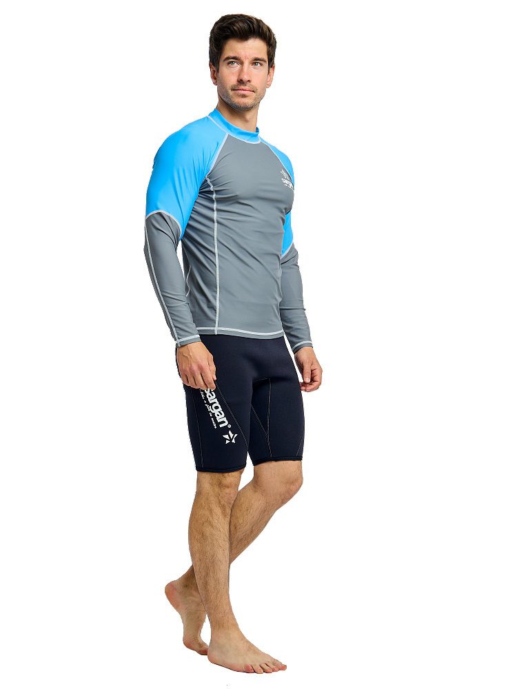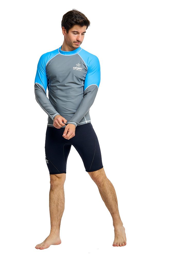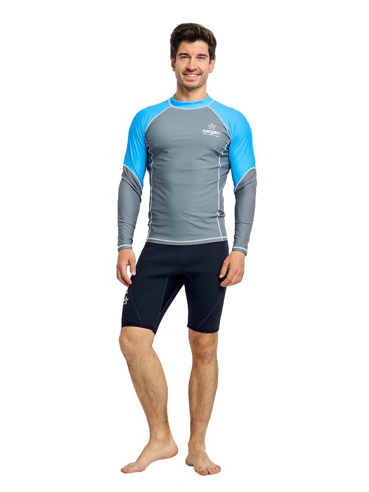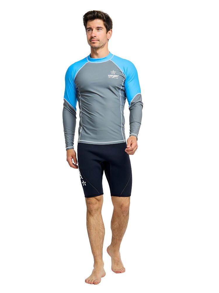 Рашгард Сарган «Агидель», длинный рукав — защитная футболка с длинными рукавами изготовлена из специального ультралегкого, эластичного, дышащего и быстросохнущего материала. Рашгард предназначен для пляжного отдыха, плавания и снорклинга в открытой воде, а также для каякинга, серфинга и прогулок на SUP досках. Ультравысокая защита от UF излучения Он обеспечивает отличную защиту от солнца, от укусов медуз и ветра. Характеристики: — Защита от солнца: UPF 50+ — Материал: 80% полиамид и 20% эластан. — Размерный ряд: S, M, ML, L, XL, XXL, XXXL — Крой: анатомический. ТЕХНИЧЕСКИЕ ОСОБЕННОСТИ • Эта защитная футболка изготовлена из специального эластичного материала. • Обеспечивает отличную защиту от солнца, ветра и низких температур как в воде, так и в сухом состоянии. • Плоские швы для комфорта и долговечности. • Идеально подходит для дайвинга, сноркелинга, серфинга, SUP и других водных видов спорта.