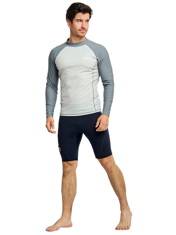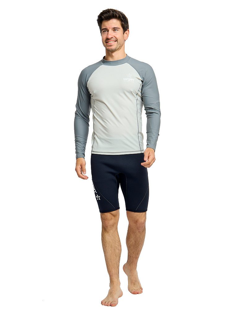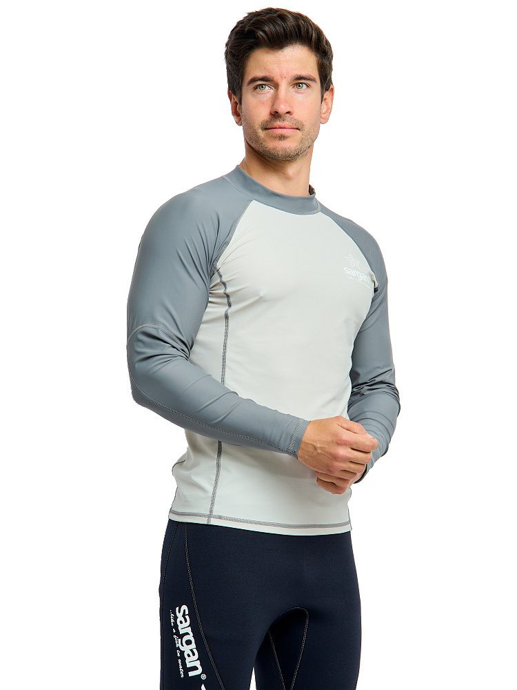 Рашгард Сарган «Агидель», длинный рукав — защитная футболка с длинными рукавами изготовлена из специального ультралегкого, эластичного, дышащего и быстросохнущего материала. Рашгард предназначен для пляжного отдыха, плавания и снорклинга в открытой воде, а также для каякинга, серфинга и прогулок на SUP досках. Ультравысокая защита от UF излучения Он обеспечивает отличную защиту от солнца, от укусов медуз и ветра. Характеристики: — Защита от солнца: UPF 50+ — Материал: 80% полиамид и 20% эластан. — Размерный ряд: S, M, ML, L, XL, XXL, XXXL — Крой: анатомический. ТЕХНИЧЕСКИЕ ОСОБЕННОСТИ • Эта защитная футболка изготовлена из специального эластичного материала. • Обеспечивает отличную защиту от солнца, ветра и низких температур как в воде, так и в сухом состоянии. • Плоские швы для комфорта и долговечности. • Идеально подходит для дайвинга, сноркелинга, серфинга, SUP и других водных видов спорта.