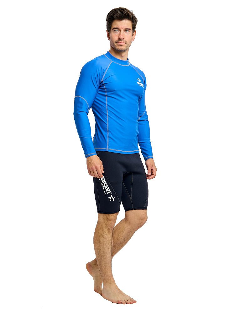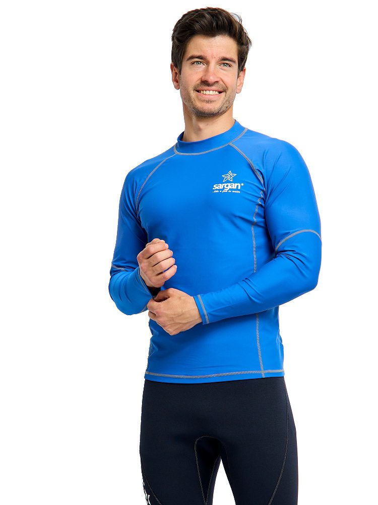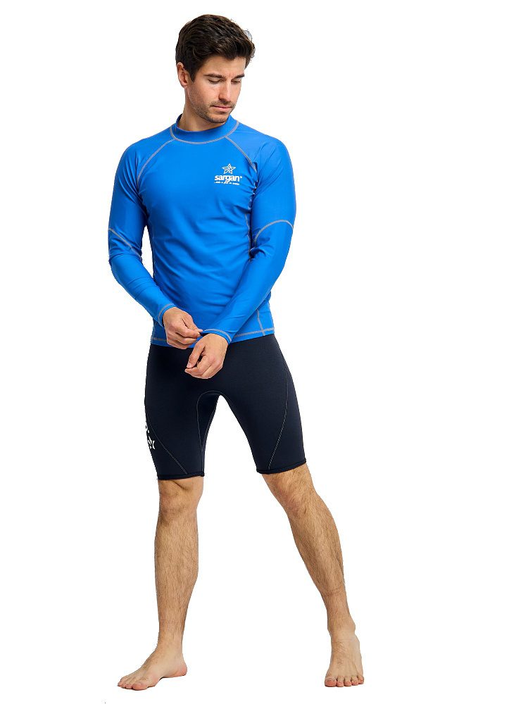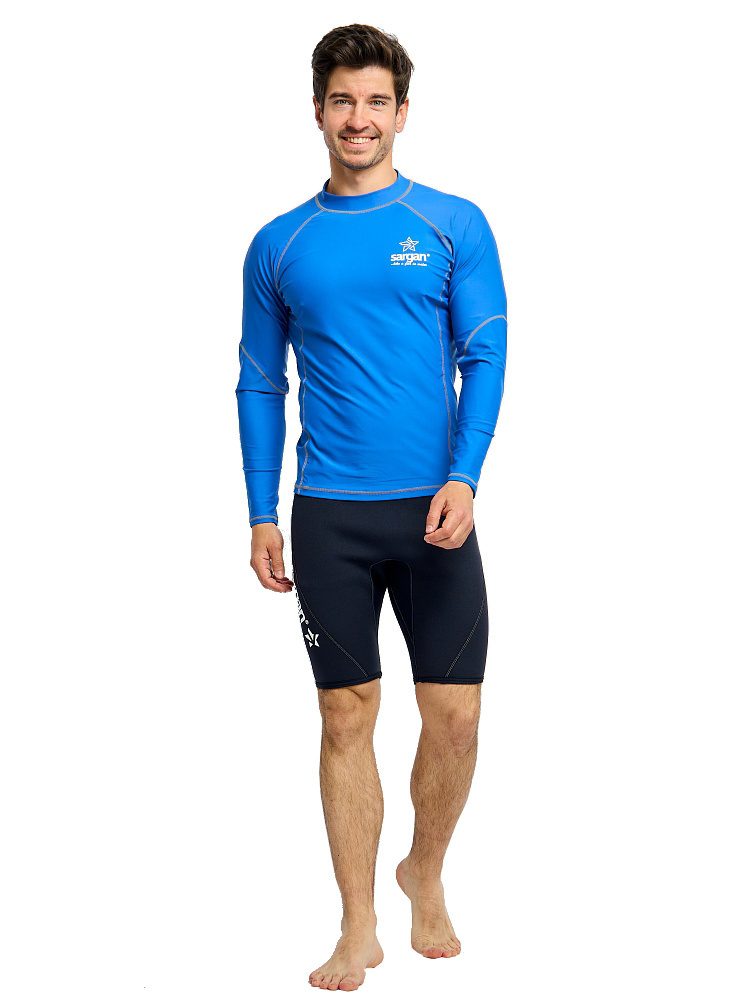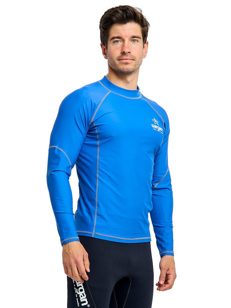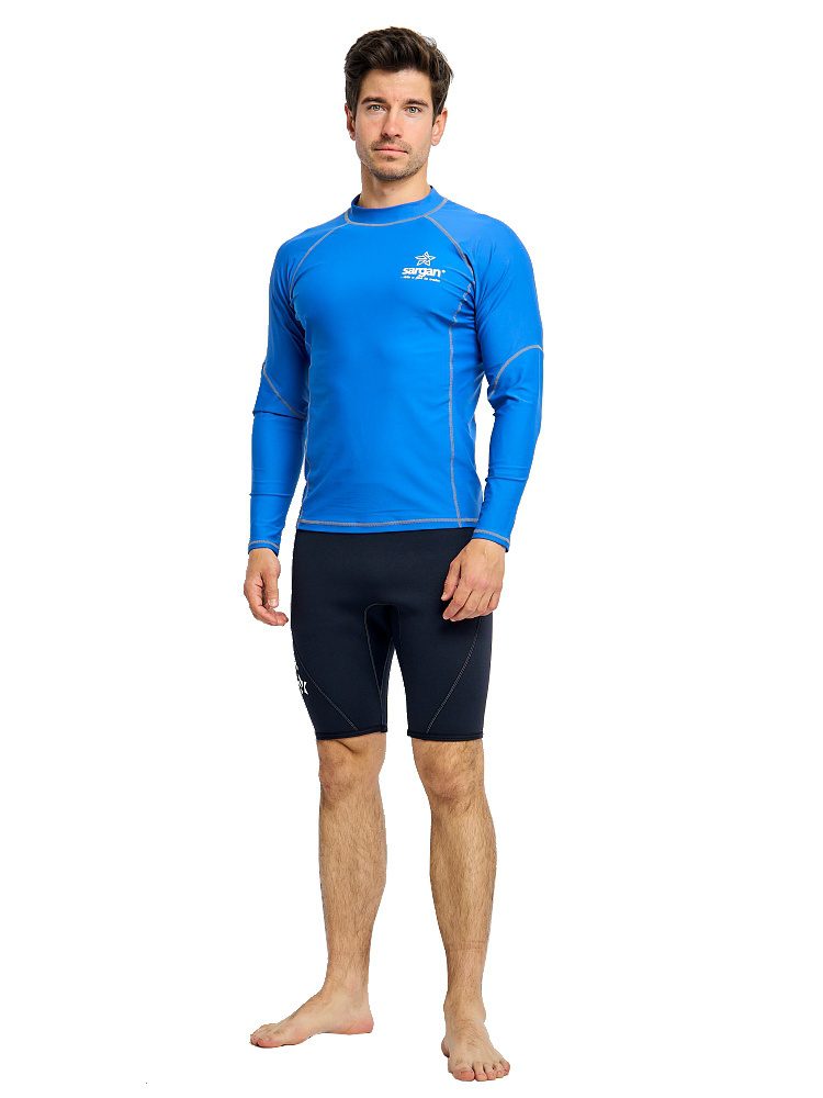 Рашгард Сарган «Агидель», длинный рукав — защитная футболка с длинными рукавами изготовлена из специального ультралегкого, эластичного, дышащего и быстросохнущего материала. Рашгард предназначен для пляжного отдыха, плавания и снорклинга в открытой воде, а также для каякинга, серфинга и прогулок на SUP досках. Ультравысокая защита от UF излучения Он обеспечивает отличную защиту от солнца, от укусов медуз и ветра. Характеристики: — Защита от солнца: UPF 50+ — Материал: 80% полиамид и 20% эластан. — Размерный ряд: S, M, ML, L, XL, XXL, XXXL — Крой: анатомический. ТЕХНИЧЕСКИЕ ОСОБЕННОСТИ • Эта защитная футболка изготовлена из специального эластичного материала. • Обеспечивает отличную защиту от солнца, ветра и низких температур как в воде, так и в сухом состоянии. • Плоские швы для комфорта и долговечности. • Идеально подходит для дайвинга, сноркелинга, серфинга, SUP и других водных видов спорта.