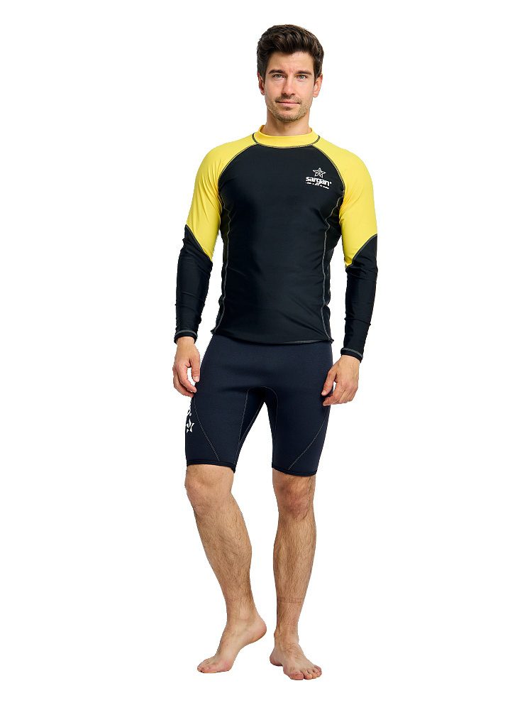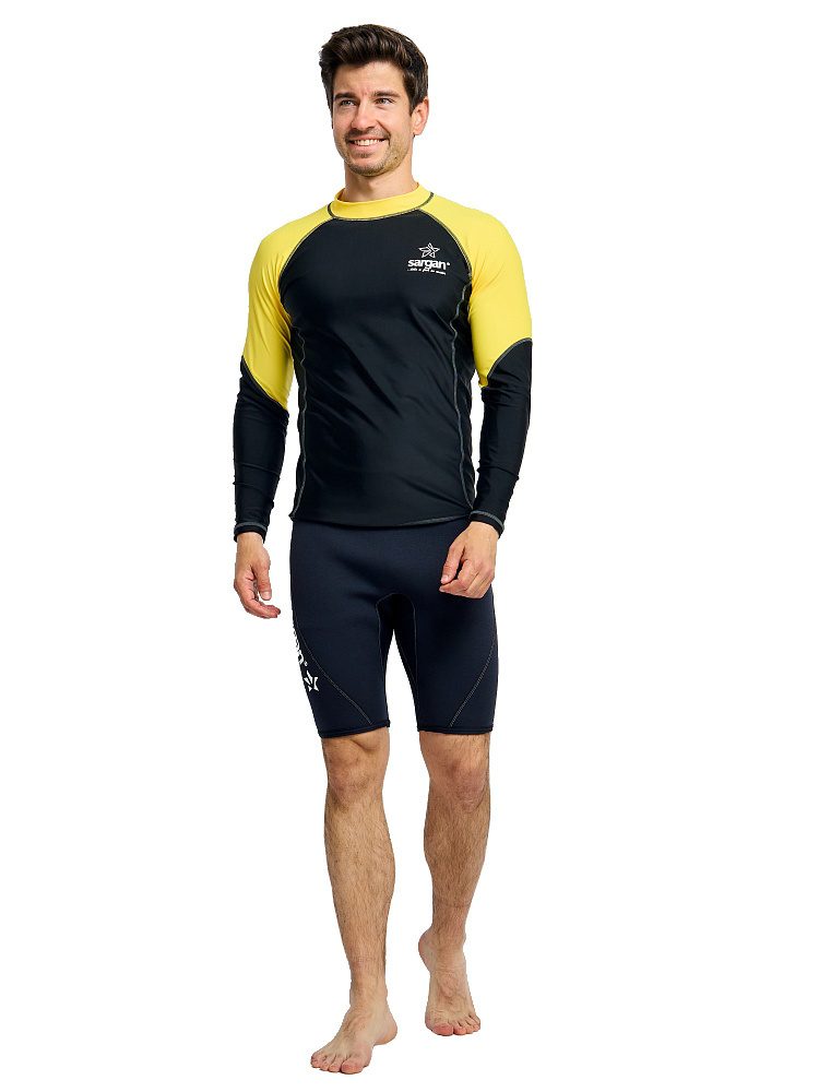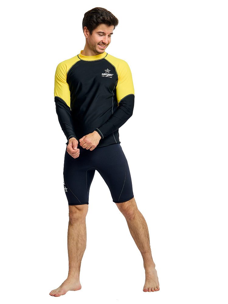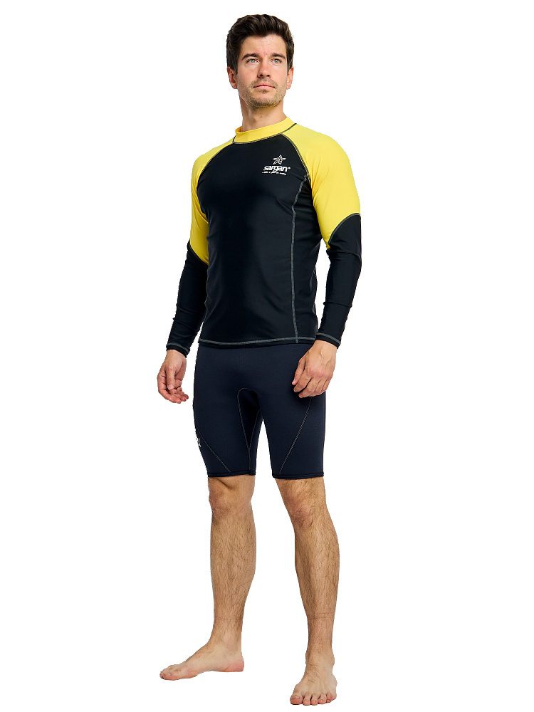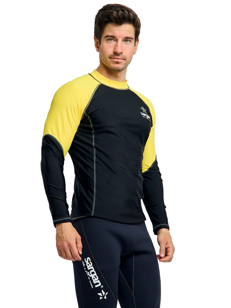 Рашгард Сарган «Агидель», длинный рукав — защитная футболка с длинными рукавами изготовлена из специального ультралегкого, эластичного, дышащего и быстросохнущего материала. Рашгард предназначен для пляжного отдыха, плавания и снорклинга в открытой воде, а также для каякинга, серфинга и прогулок на SUP досках. Ультравысокая защита от UF излучения Он обеспечивает отличную защиту от солнца, от укусов медуз и ветра. Характеристики: — Защита от солнца: UPF 50+ — Материал: 80% полиамид и 20% эластан. — Размерный ряд: S, M, ML, L, XL, XXL, XXXL — Крой: анатомический. ТЕХНИЧЕСКИЕ ОСОБЕННОСТИ • Эта защитная футболка изготовлена из специального эластичного материала. • Обеспечивает отличную защиту от солнца, ветра и низких температур как в воде, так и в сухом состоянии. • Плоские швы для комфорта и долговечности. • Идеально подходит для дайвинга, сноркелинга, серфинга, SUP и других водных видов спорта.