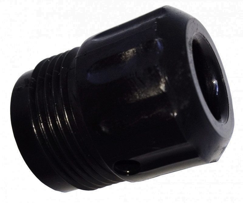Гайка-фиксатор вакуумной манжеты ружья ПЕЛЕНГАС имеет внутренний бортик для удержания вакуумной манжеты в рабочем положении. Также служит направляющей для скользящей втулки в процессе зарядки и вылета гарпуна.