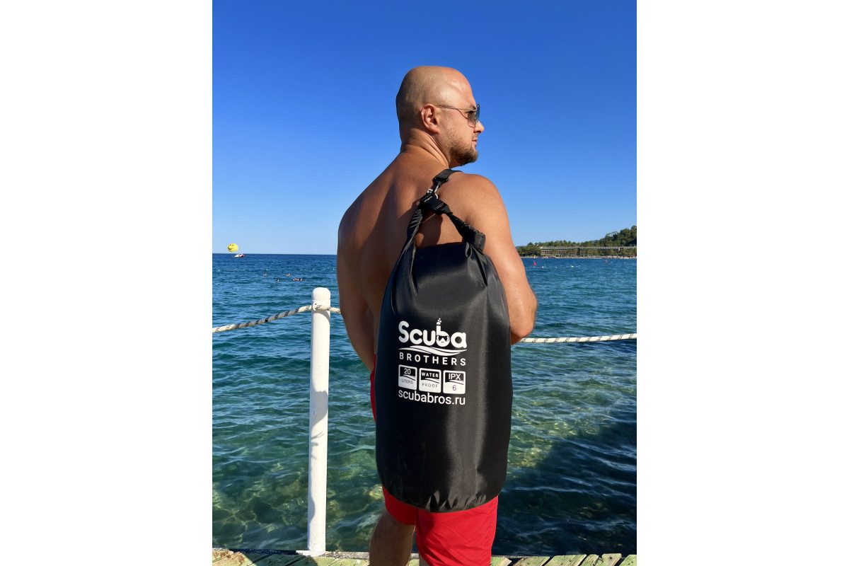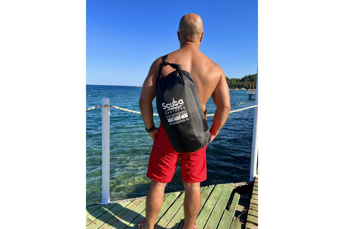 Гермомешок SCUBA BROTHERS BLACK WAVE, с лямкой, тафета предназначен для переноски и транспортировки снаряжения и вещей. Гермомешок выполнен из тафеты, это новый инновационный материал, ультралегкий и прочный. Его можно положить в чемодан, в основные вещи, когда вы собираетесь в путешествие или длительный поход, он не будет добавлять вес. И уже на месте использовать его для переноски небольших вещей, документов, снастей, снаряжения.Вес гермомешка составляет 190 гр. – 15 литров, 215 гр. – 20 литров.Так же гермомешок SCUBA BROTHERS BLACK WAVE можно использовать для транспортировки рыбы, он предотвратит распространение рыбного запаха.К гермомешку прилагается лямка для переноски на плече или за спиной, это дает прекрасную возможность освободить руки и правильно распределить вес, чтобы спина не перегружалась.Гермомешок SCUBA BROTHERS BLACK WAVE будет полезен в походах, при сплаве на кайаках, SUP досках, байдарках и на рыбалке.Если вы собрались на пляж, то возьмите этот мешок с собой, вещи останутся в сохранности, будут находиться в одном месте и вы избежите попадания песка и соответственно порчи вашего имущества.Гермомешок SCUBA BROTHERS BLACK WAVE производится в двух разных объемах: 15 литров, 20 литров. Вы сможете подобрать необходимый объем исходя из ваших потребностей. Объем гермомешка регулируется верхним клапаном, закручивая его, вы меняете литраж мешка.Предупреждение: Степень влагозащиты мешка — IPX6, что является средним уровнем защиты. Гермомешок SCUBA BROTHERS BLACK WAVE не предназначен для долго нахождения под водой, не погружайте его в воду.Комплектация: гермомешок, лямка для переноски.Характеристики:- рекомендации по применению: фридайвинг, подводная охота, дайвинг, пляж и снорклинг, бассейн, SUP и каяки, туризм;- модель: BLACK WAVE;- материал: тафета;- степень влагозащиты, IPX: 6;- объём, л: 15, 20;- габариты Д*Ш*В, см: 15л – 52*39*39, 20 л – 63*39*39;- вес, грамм: 190, 215;- max нагрузка, кг: 15-18;- дополнительный внутренний карман: нет;- дополнительный наружный карман: нет;- наплечные ремни: да;- ремень нагрудной фиксации: да;- ручка для переноски: да;- клапан слива: нет;- цвет: черный;- бренд: SCUBA BROTHERS;- страна бренда: Россия;- страна производства: Россия.
