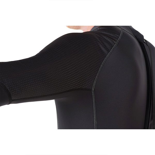 На шее, запястьях и лодыжках установлены неопреновые обтюраторы для более плотного прилегания костюма. цвет: мужской материал: трехслойная ткань ExoWear неопреновые обтюраторы задняя молния технология OMNIRED цвет: черный