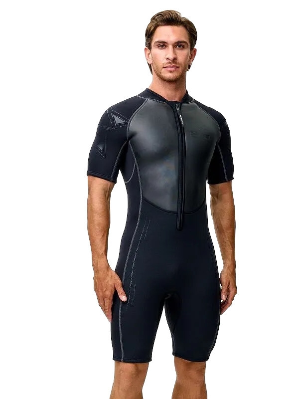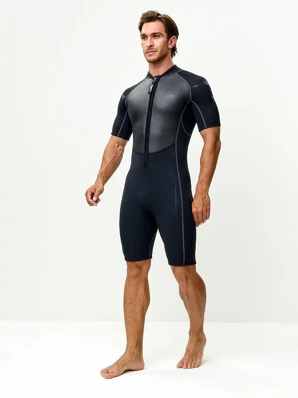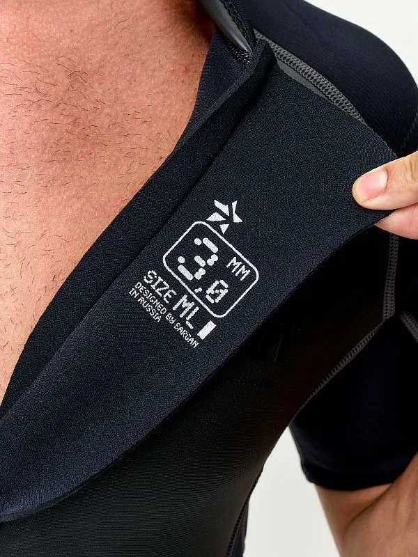 Новейший костюм для водных видов спорта в линейке коротких и длинных костюмов серии «»BLACK KING»» Shorty Men 3 mm YKK — JAPAN, молния сзади и на груди  100% оригинал Броская новая стропа SARGAN для расстегивания костюма Прочные, надежные швы по технологии «»flatlock»», эластичные водостойкие нитки Молния на груди позволяет легче одевать И снимать, И носить этот гидрокостюм БОЛЕЕ КРАСИВО !!! Прекрасно сидит на фигуре и создаёт ощущение полного комфорта.  Легко одевается и снимается. Прекрасно подходит для занятий надводными видами спорта. Пригоден для подводного плавания в бассейнах и теплых морях.