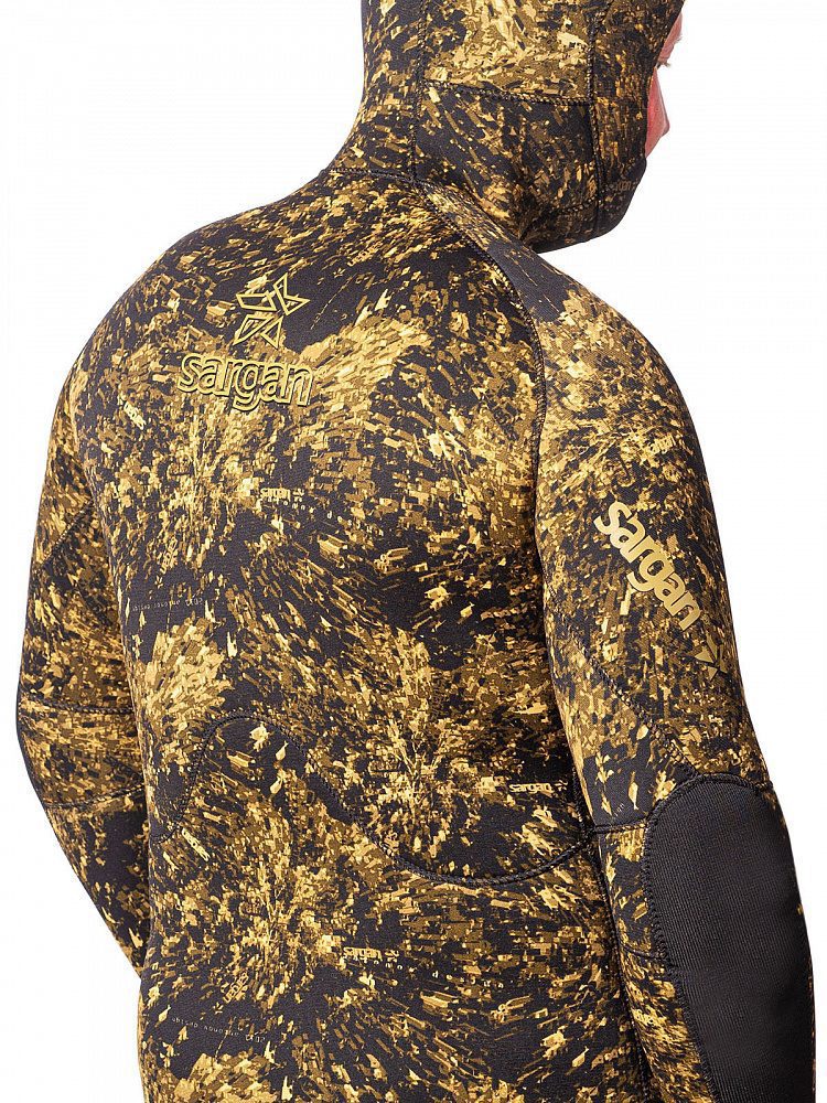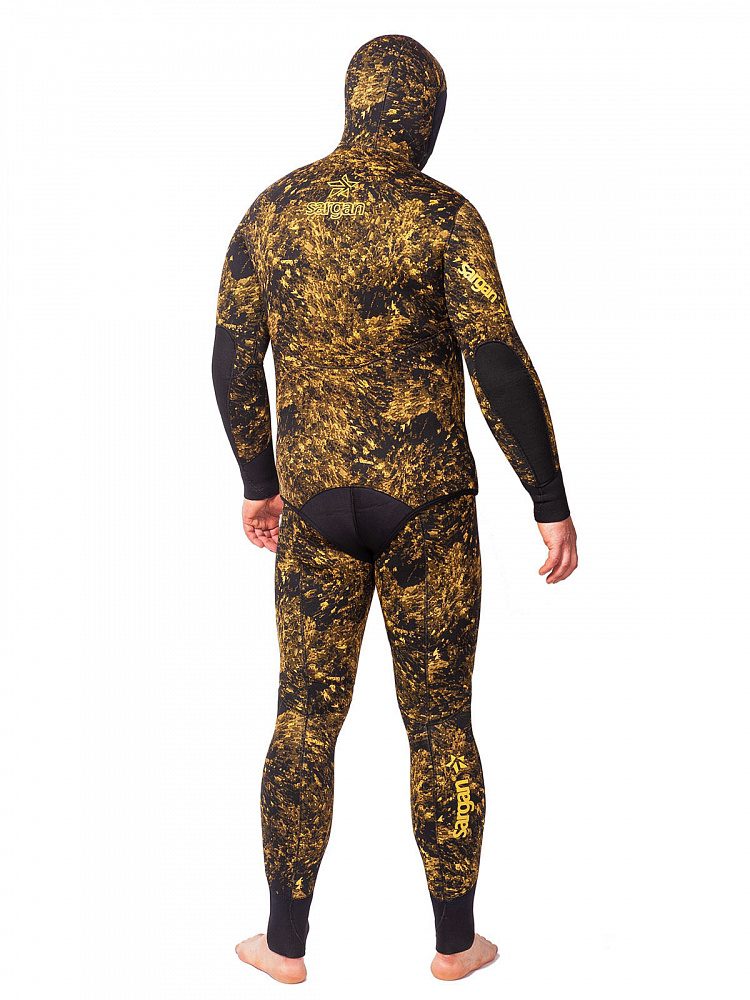 Уникальный крой гидрокостюма Сталкер сохранил все свои преимущества для российского подводного охотника. Флагман линейки гидрокостюмов для подводной охоты «Сарган». Гидрокостюм для самых опытных и взыскательных подводных охотников. Полностью камуфлированный. Камуфляж – биоцифровой камуфляж RDEST 2.0. «Открытая пора» изнутри и камуфлированный нейлон снаружи. Оригинальный по эргономике крой анатомического типа с заданной формой «богомол» – полусогнутые руки впереди. Куртка имеет усиленную накладку на груди для зарядки арбалетов и защиту локтевых сгибов из супратекса. Рукава куртки имеют удлиненные обтюраторы, со специальными застрочками, которые дают возможность охотнику самостоятельно подогнать длину рукава по себе. Конструкция шлема гидрокостюма предусматривает возможность каждому пользователю самостоятельно подрезать отверстие в лицевом обтюраторе под свои индивидуальные размеры. Поэтому изначально шлем изготавливается с уменьшеным лицевым отверстием обтюратора, практически полностью закрывающего свободные части лица. На куртке, на левой верхней части груди, штатно предустановлен крепеж для ножен – самое оптимальное, с точки зрения эргономики и безопасности, место для закрепления подводного ножа. Что обеспечивает беспрепятственный и быстрый доступ к ножу обеими руками. Штаны «лонгджон» с усиленными пластизолевыми наколенниками поверх защиты из супратекса и самой высокой в мире спиной на серийно выпускаемых костюмах. Также штаны имеют удлиненные обтюраторы и возможность самостоятельно отрегулировать длину штанин. Швы выполнены по технологии «FitzWright». С прошивкой на двухниточной машине.