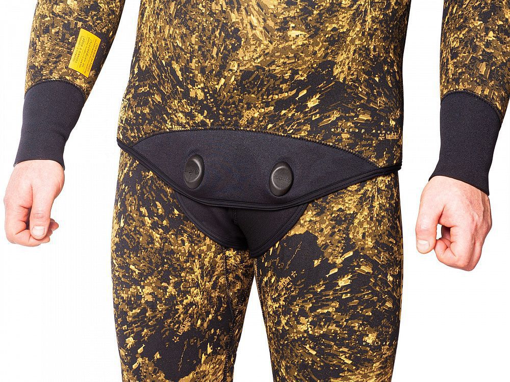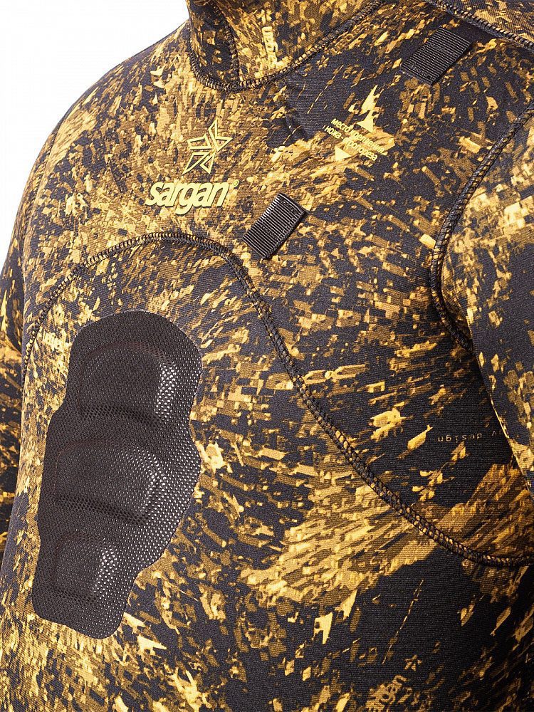 Гидрокостюм для самых опытных и взыскательных подводных охотников. Полностью камуфлированный. Камуфляж – биоцифровой камуфляж RDEST 2.0. «Открытая пора» изнутри и камуфлированный нейлон снаружи. Оригинальный по эргономике крой анатомического типа с заданной формой «богомол» – полусогнутые руки впереди. Куртка имеет усиленную накладку на груди для зарядки арбалетов и защиту локтевых сгибов из супратекса. Рукава куртки имеют удлиненные обтюраторы, со специальными застрочками, которые дают возможность охотнику самостоятельно подогнать длину рукава по себе.