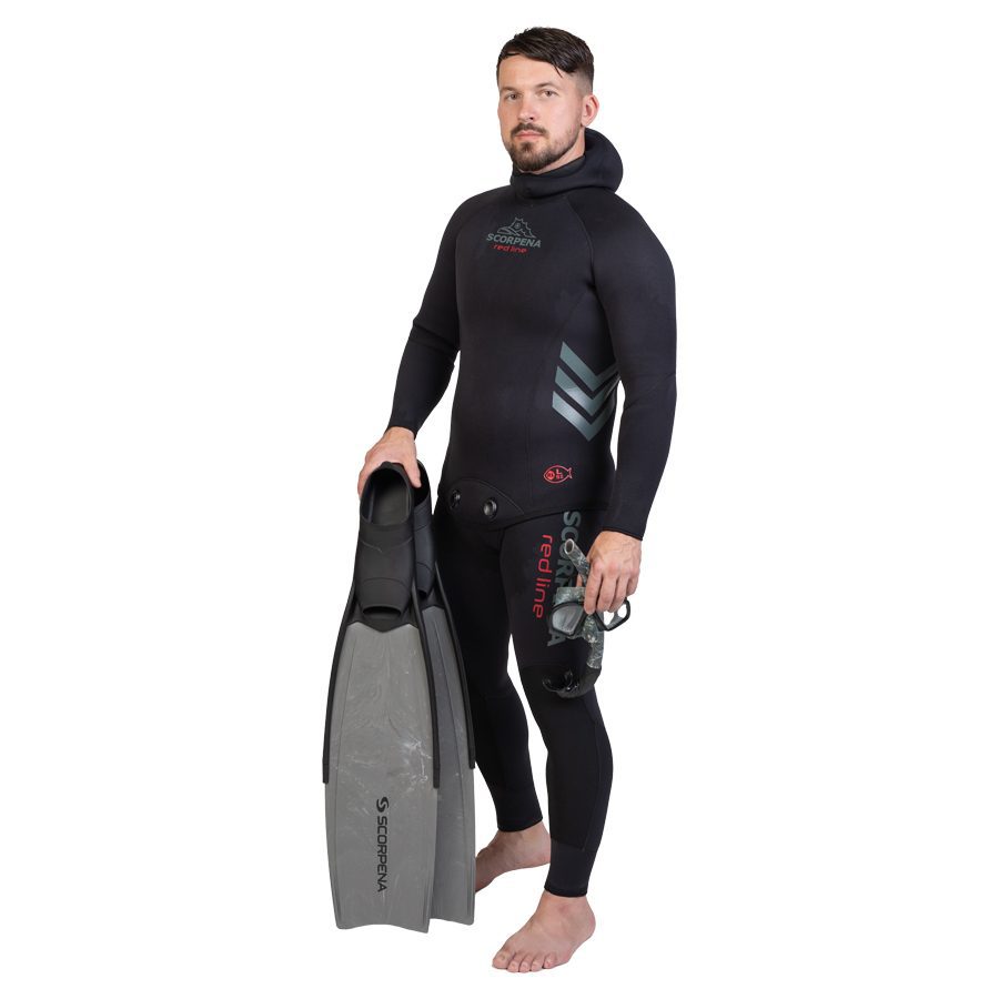 Scorpena RedLine – неопреновый гидрокостюм с открытой порой изнутри и покрытием тканью снаружи. Костюм Scorpena RedLine изготовлен из качественного южнокорейского неопрена NamLiong выдерживающего многократные погружения на глубину. Выпускается этот гидрокостюм в толщине неопрена 5 и 7 мм