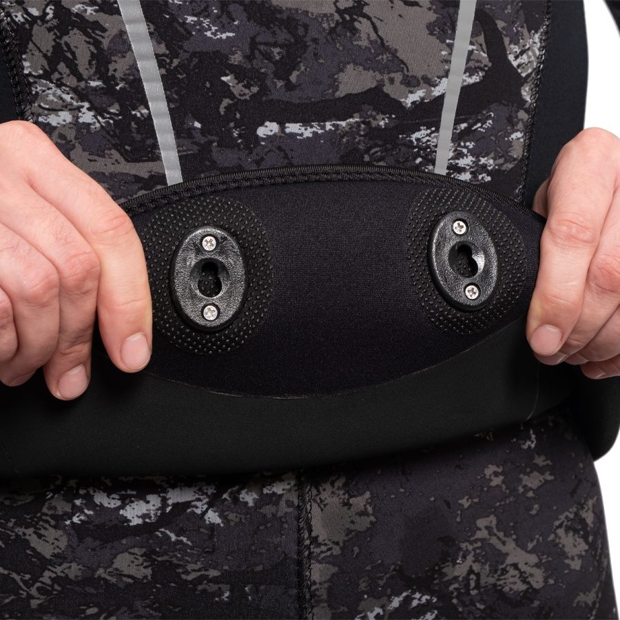 Скорпена Самурай Камо (Scorpena Samurai CAMO) это обновлённая модель гидрокостюма, который на протяжении последних лет пользовался повышенным спросом – Скорпена Самурай (Scorpena Samurai) благодаря удачному сочетанию уникального неопрена Ямамото (Yamamoto) и проверенной годами оригинальной выкройки.Самое главное изменение в новой версии костюма – тип ткани, которым с внешней стороны покрыт легендарный неопрен. Эта новая версия гидрокостюма покрыта не нейлоном как прошлая версия, а легко тянущейся тканью с полиуретановой нитью (так называемой лайкрой) и поэтому эти костюмы будут ещё более мягкими и приятными в использовании — на уровне лучших и премиальных мировых образцов. Но при этом уровень теплоизоляции костюмов Скорпена Самурай Камо (Scorpena Samurai CAMO) настолько высок, что мы утверждаем: эти костюмы являются одними из самых комфортных и тёплых из массово выпускаемых неопреновых костюмов мокрого типа.Кроме того, новая модификация костюма – Скорпена Самурай Камо (Scorpena Samurai CAMO)  сконструирована из контрастных деталей, большая часть из которых имеет камуфляжную расцветку, что визуально разбивает силуэт охотника на более мелкие части, это делает его ещё более незаметным на фоне подводного рельефа.Гидрокостюм Скорпена Самурай Камо (Scorpena Samurai CAMO) обладает высокой степенью адаптивности: у каждого пользователя имеется возможность самостоятельно укоротить высокий комбинезон с лямками (LongJohn) до так называемых «Высоких штанов» (high pants) по любой из намеченных закрепок, которыми оснащена верхняя часть комбинезона;- для рукавов мы добавили удлинённые манжеты из неопрена меньшей толщины, с повышенной растяжимостью, чтобы облегание запястий было максимально плотным, а надевание и снимание куртки – ещё более комфортным. Также эти манжеты имеют несколько закрепок для самостоятельной подгонки длины рукавов пользователем;- манжеты штанин тоже стали чуть более длинными, что особенно оценят охотники высокого роста. Эти манжеты также получили по три закрепочных шва чтобы каждый подводный охотник мог идеально подогнать длину штанин по своему предпочтению.Костюм Скорпена Самурай Камо (Scorpena Samurai CAMO) изготовлен из нескольких видов мягкого и эластичного неопрена Ямамото (Yamamoto) произведённого в Японии. Внутренняя сторона костюма – открытая пора. С наружной стороны гидрокостюм покрыт тканью, нить которой содержит резиновую составляющую и поэтому такая ткань очень хорошо тянется. Такое покрытие не ограничивает свойства неопрена к растяжимости, костюм легко садится по фигуре и не стесняет движения в суставах, позволяет легко вытягивать руки и активно двигать ногами. Даже при большой толщине неопрена куртка не мешает глубоко дышать, поэтому мышцы грудной клетки не утомляются и охотник способен нырять дольше и глубже. Благодаря комбинации нескольких видов неопрена и их толщин в различных частях выкройки гидрокостюм Scorpena Samurai CAMO идеально садится на большинство фигур, без излишнего натяжения плотно прилегает к телу, обеспечивая максимальную термоизоляции. Для гидрокостюмов толщиной 5 мм и 7 мм использован Yamamoto No38, а для 9 мм — более эластичный и мягкий Yamamoto No39.Детали костюма проклеены и затем прошиты двойным слепым швом (двойной ниткой), который усиливает стыки деталей, но не пробивает неопрен насквозь, тем самым шов остаётся герметичным и более прочным. На м