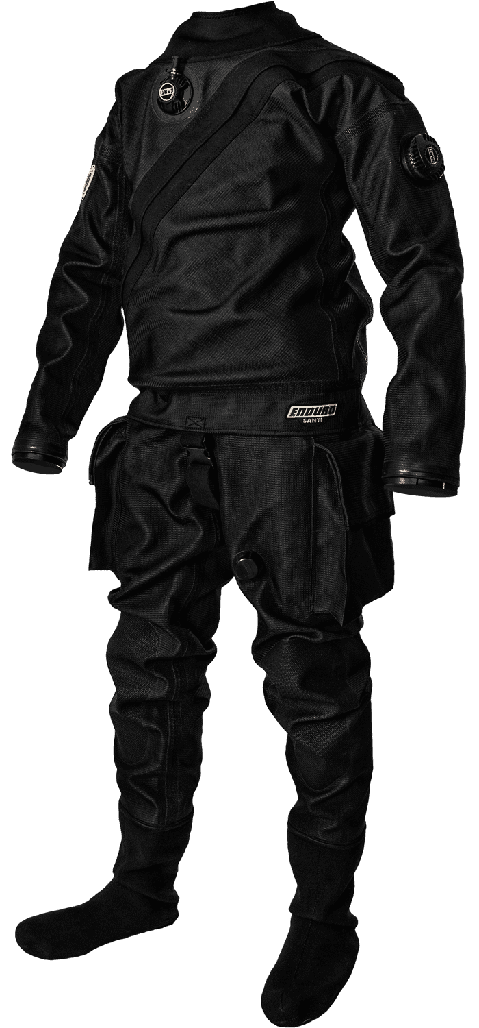 Сухой гидрокостюм Enduro – классический, чрезвычайно прочный и надёжный гидрокостюм для технических дайверов. Он изготовлен из классического триламината Cordura/Butylene/Polyester общей плотностью 620 г/м². Имеет телескопический торс и специальный Y-образный крой для большей гибкости и лёгкости движений. Рекомендуется для тяжёлых технических погружений и подводных технических работ.