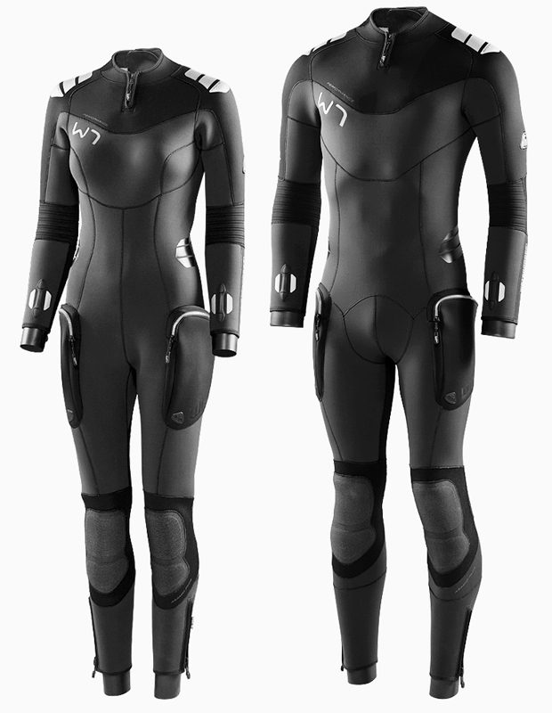Гидрокостюм для дайвинга W 7 моно 5 мм WP Первоклассный по дизайну и высококачественный по исполнению гидрокостюм для требовательных дайверов , подходящий для всех видов дайвинга от высокотехнологичного шведского производителя — Waterproof. Чрезвычайно мягкий и эластичный неопрен Neoflex 100% CR в элегантном сочетании черного и темно-серого цветов обеспечивает идеальное растяжение в четырех направлениях и удобную и надежную посадку. Новый W7 изготовлен из материалов и технологий высочайшего качества, чтобы обеспечить максимальную долговечность и продлить срок службы W7. Компания Waterproof использует неопрен JAKO, изготовленный на основе известняка, чтобы сделать гидрокостюмы максимально экологичными, а также упаковку без пластика, чтобы моря и океаны оставались чистыми. 5 или 7 мм Neoflex 100% микропористый известняковый CR неопрен — более дорогой, но фактически единственный неопрен, который действительно подходит для дайвинга. Превосходная долговечность и теплоизоляция намного лучше, чем у неопрена других качеств, таких как SBR, SCR и т.д. Оснащен двумя фиксирующими ремнями с противоскользящим покрытием для вашего компьютера, износостойким покрытием из Duratex для защиты от истирания, а также всем функционалом, к которому вы привыкли на костюмах Waterproof. Мягкие наколенники новой конструкции, усиленные кевларом и дюратексом, защищают важные части костюма. Система двойного уплотнения на молнии — подушка для позвоночника, неопрен «гладкая кожа» сводят к минимуму поток воды через костюм и обеспечивают дополнительное тепло. Двойная обтюрация из неопрена «гладкая кожа» на запястьях и лодыжках с застежкой-молнией позволяют надевать и снимать костюм комфортно и легко. Теплозащитная подкладка Extend для более мягкого, теплого и комфортного ощущения. Нескользящие поверхности на плечах и талии. Два обтекаемых, простых в использовании, эластичных кармана с достаточным пространством для хранения запасной маски, катушки с линем, декомпрессионных таблиц и т.д. Все молнии оснащены замком с удобным язычком, чтобы их было легче открывать и закрывать в перчатках или без них. Надоели попадающие за шиворот и вызывающие озноб струйки воды при прыжке в воду? В качестве опции вы можете получить съемное шейное уплотнение, которое предотвращает затекание воды в костюм, что очень удобно, когда вы ныряете без капюшона! Элегантная серая цветовая гамма позволяет легко комбинировать костюм с другим снаряжением и оборудованием. Особенности: Суперэластичные карманы — два встроенных набедренных кармана. Обтекаемые и эластичные, с достаточным пространством для размещения, например маски или катушки. Клапаны для слива воды. Система двойного уплотнения молнии — подкладка для позвоночника. Уплотнение из неопрена «гладкая кожа», чтобы минимизировать поток воды, а также добавить тепла. Шейный обтюратор W7 — устраняет затекание воды в костюм. Доступен и продается как отдельный аксессуар. Наколенники — усилены кевларом и дюратексом. Укрепляют важные часть костюма, которые при этом остаются мягкими и эластичными. Теплозащитная подкладка EXTEND для ощущения большего тепла, мягкости и комфорта. Язычок на молнии — анатомический язычок молнии новой конструкции. Обеспечивает надежный захват в перчатках или без них. Покрытие Duratex в области ягодиц обеспечивает устойчивость к истирани