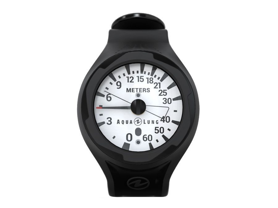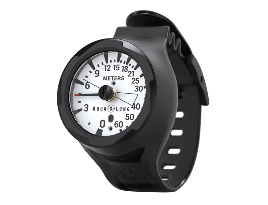 Глубиномер Aqualung наручный 60м — Максимальная глубина 60 метров.- Прогрессивная шкала — более частые деления до 20 метров.- Прочный широкий ремешок.