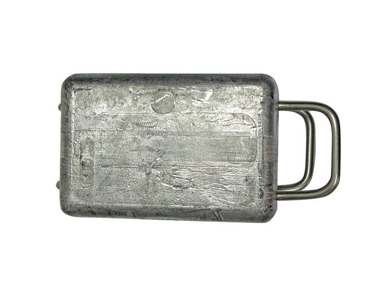 Свинцовый груз весом 1 кг с быстросъёмным креплением для ремня и полукольцом для закрепления аксессуаров.