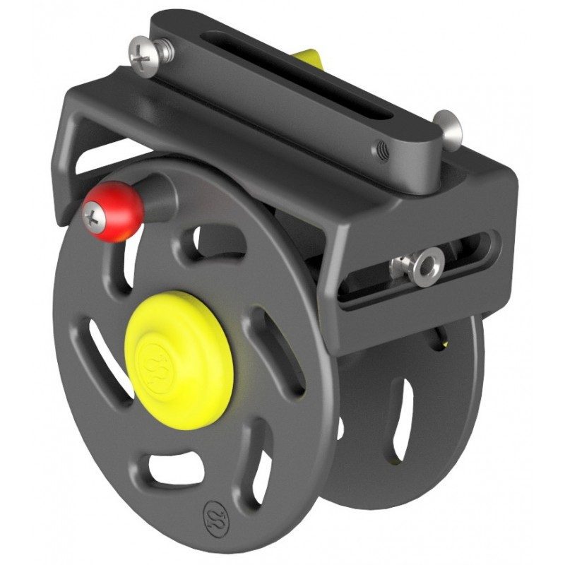 Крепление данной катушки предусмотрено только в модуль «Каюк» и к ружью модели «»Борисыч»». На катушку укладывается 20 метров линя толщиной 2 мм. Диаметр шпули 65 мм и полезная ширина 28 мм. Возможна установка для левши и для правши. Соответственно в кронштейне катушки предусмотрены 2 симметрично расположенных паза под размещение фильеры для линя, которая выполнена из нержавеющей стали и имеет с двух сторон плавные скругления в отверстии прохода линя, что предотвращает его повреждение в процессе эксплуатации. Затягивается катушка и расслабляется одним движением рычага. Рычаг затяжки и ручка намотки размещены с противоположных сторон и не мешают друг другу.Пластиковые детали катушки выполнены из ударопрочной жесткой пластмассы. В комплект поставки входят два крепежных винта из нержавеющей стали.