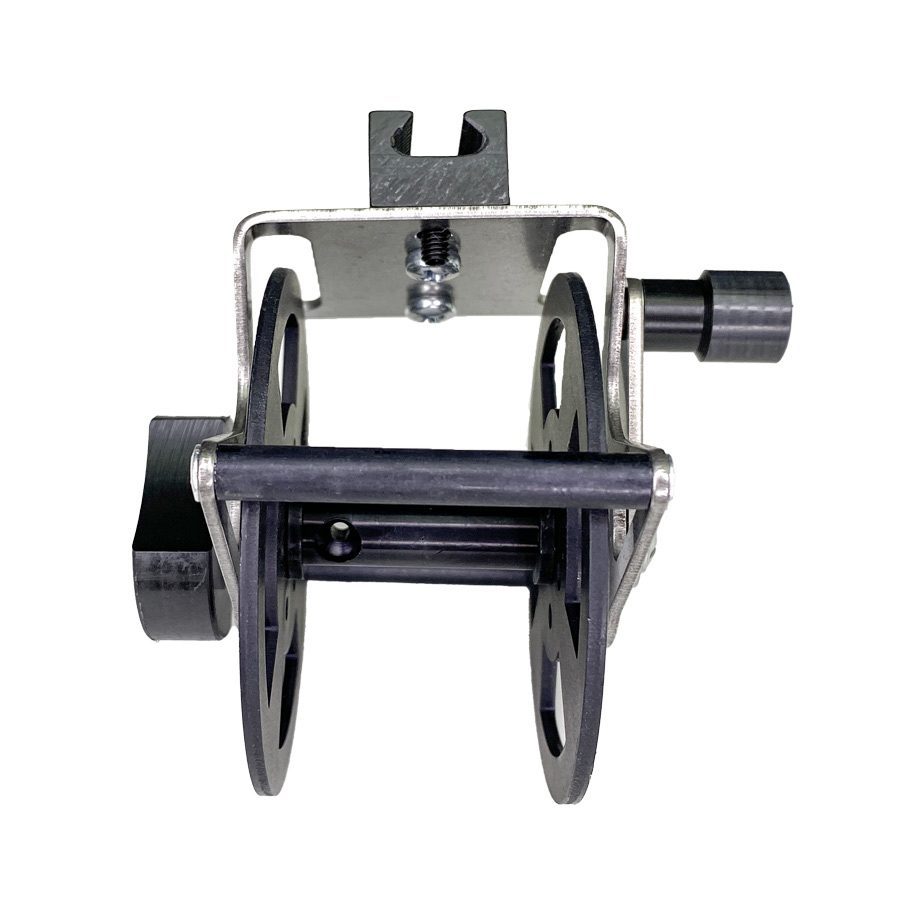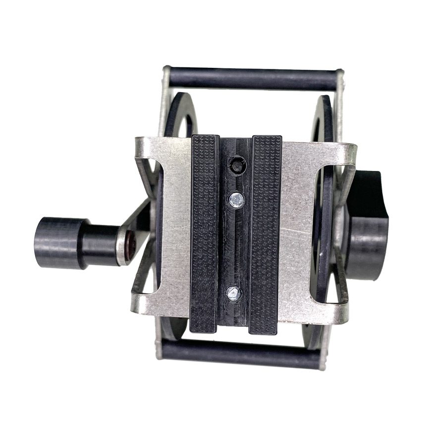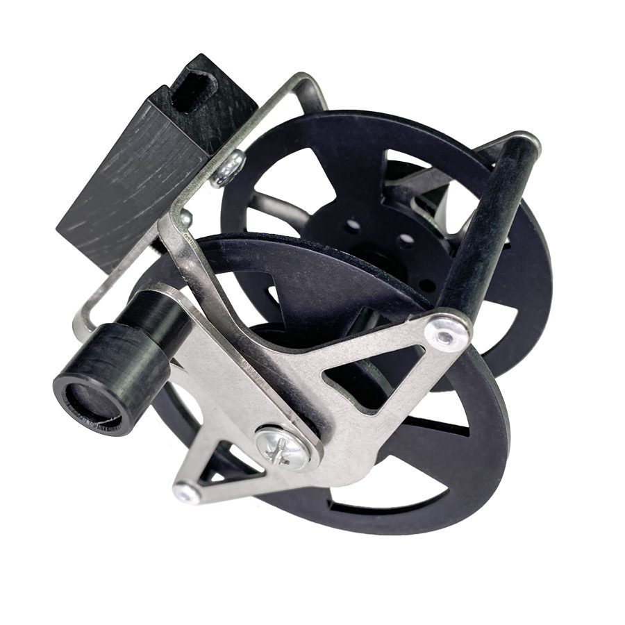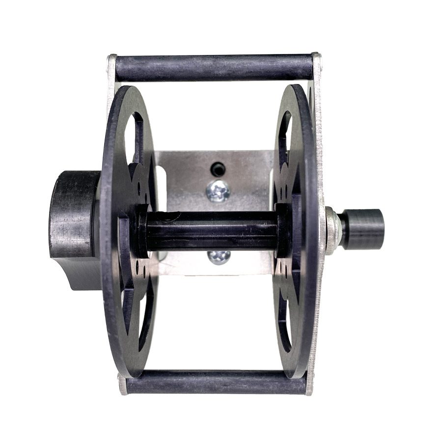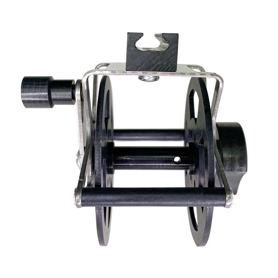 Корпус катушки изготовлен из прочного сплава. Диаметр шпули, основной части катушки, на которую наматывается линь, позволяет разместить на ней достаточную длину линя (до 30 метров). Для регулировки усилия вращения катушки имеется фрикцион с крупной ручкой регулировки: удобной для использования даже в неопреновых перчатках. Корпус и крепление катушки выполнено симметричным, что позволяет установить её на ружьё для намотки как правой, так и левой рукой.