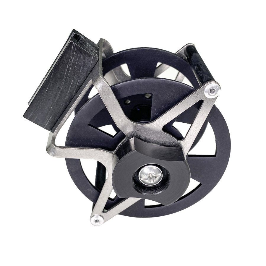 Катушка приспособлена для крепления на планку, что находится на передней части спусковой скобы ружья Scorpena Mako. Достаточно просто надвинуть катушку ответной частью крепления на планку с усилием до упора и можно быть уверенным, что никакие рывки не сорвут её вперёд. Но для большей уверенности можно дополнительно зафиксировать её стопорным распорным винтом с помощью шестигранного (имбусового) ключа в комплекте поставки.Корпус катушки изготовлен из прочного сплава. Диаметр шпули, основной части катушки, на которую наматывается линь, позволяет разместить на ней достаточную длину линя (до 30 метров). Для регулировки усилия вращения катушки имеется фрикцион с крупной ручкой регулировки: удобной для использования даже в неопреновых перчатках.Корпус и крепление катушки выполнено симметричным, что позволяет установить её на ружьё для намотки как правой, так и левой рукой.
