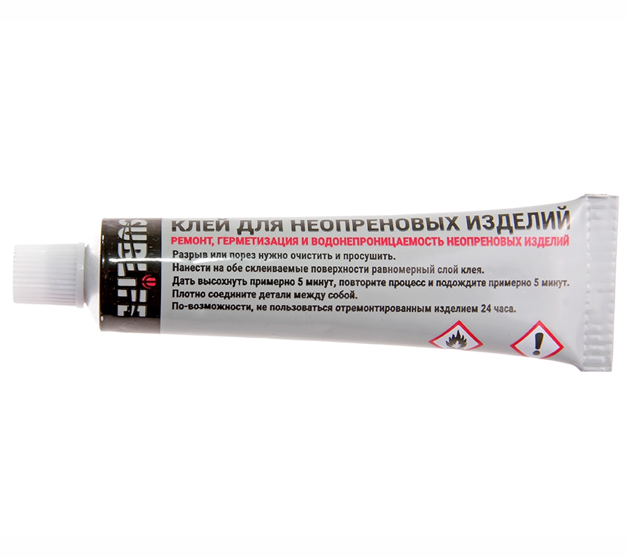 Клей неопреновый SUBLIFE предназначен для склеивания и ремонта изделий из неопрена и резины: гидрокостюмов, носков, перчаток, бот, разгрузочных неопреновых жилетов, шлемов и прочих элементов снаряжения. Клей надежно заклеивает разрывы и порезы, сохраняя и восстанавливая герметичность изделий и обеспечивая им долговечность.ХАРАКТЕРИСТИКИ:- Высокая прочность на всех типах склеивания.- Цвет клеящего состава: черный.- Состав: каучук, циклогексан, метилциклогексан, ацетон, метилацетат, диметилкарбонат.- Объем тюбика: 30 мл.ИНСТРУКЦИЯ ПО ПРИМЕНЕНИЮ:- Очистите и просушите место склеивания.- Нанесите клей тонким слоем и равномерно распределите по поверхности.- Дайте клею подсохнуть в течение 5 минут, чтобы он проник в поры неопрена.- Повторите процесс и подождите еще 5 минут.- Сильно сожмите склеиваемые поверхности, удерживая их в таком состоянии 1-2 минуты.- Постарайтесь не использовать отремонтированное изделие в течение 24 часов для достижения максимальной прочности.- Многие подводные охотники используют клей SUBLIFE для быстрого ремонта, нанося его на мокрые поверхности и не дожидаясь полного высыхания. Хотя это может дать удовлетворительные результаты, рекомендуется следовать инструкции для достижения максимальной прочности шва.МЕРЫ ПРЕДОСТОРОЖНОСТИ:- Хранить в закрытом виде в темном, защищенном от света месте, недоступном для детей.- Избегать нагревания.- Использовать только в хорошо проветриваемых помещениях.