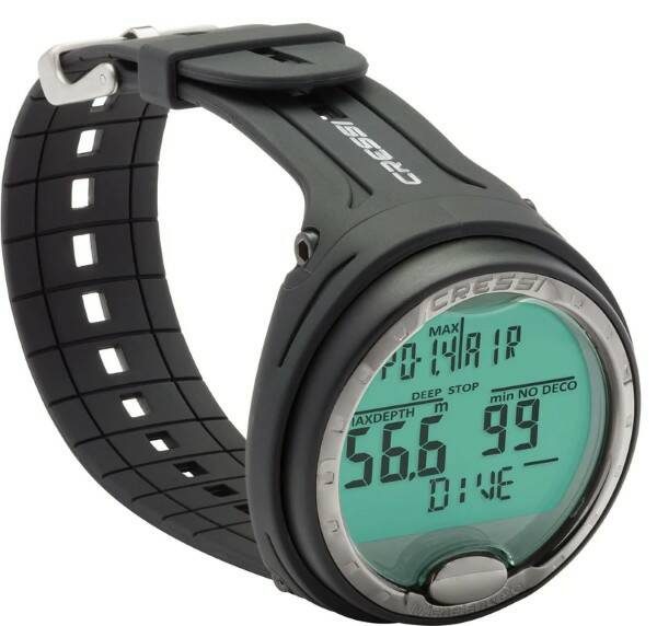 Cressi Michelangelo — компьютер для подводного Дайвинга/Фридайвинга. Идеальный компьютер для любых подводных погружений, благодаря опции отключения функций “погружение”, которая позволяет избежать ненужных сигналов тревоги во время подводного плавания. Дисплей изготовлен из технического полиолефина, а корпус сверхпрочный со стальной кнопкой. Максимальная глубина погружений до 150 м. Резиновый браслет на запястье из ТПУ с пряжкой из нержавеющей стали.